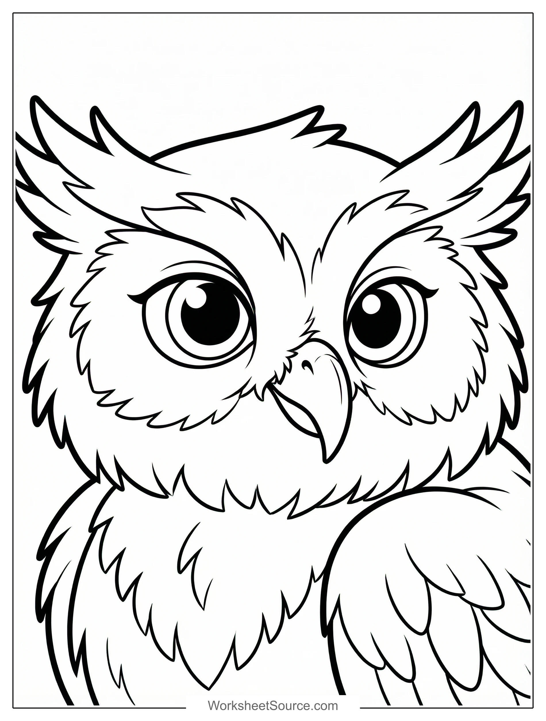 What a sweet bird portrait to color. This printable owl image is full of fun details to explore and bring to life. The big eyes are the first thing kids will notice, and they can experiment with bright colors and highlights to make the owl look wise and curious. Feathers give a great chance to try patterns, thin lines, and soft shading to show texture and depth. In the classroom, this page works well at an art center, on a themed bulletin board about birds, or as part of a group project where each child colors a different feather pattern. At home, it is perfect for a rainy afternoon activity, a calm time project, or a shared family coloring session paired with a book about owls. For creative extensions, try writing a short story about where this owl lives or cut out and mount the finished picture to make a nature postcard. This printable is free and easy to use, and it invites imagination and observation while remaining simple and relaxing to color.