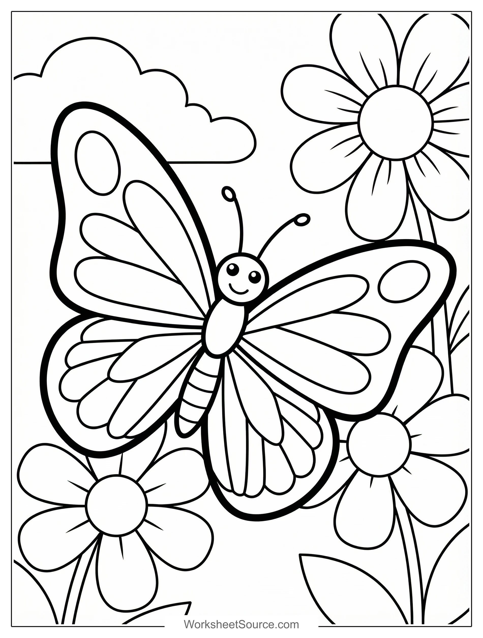 Download this free printable Colorful Butterfly coloring page for kids. Great for classroom activities, home learning, and creative fun.