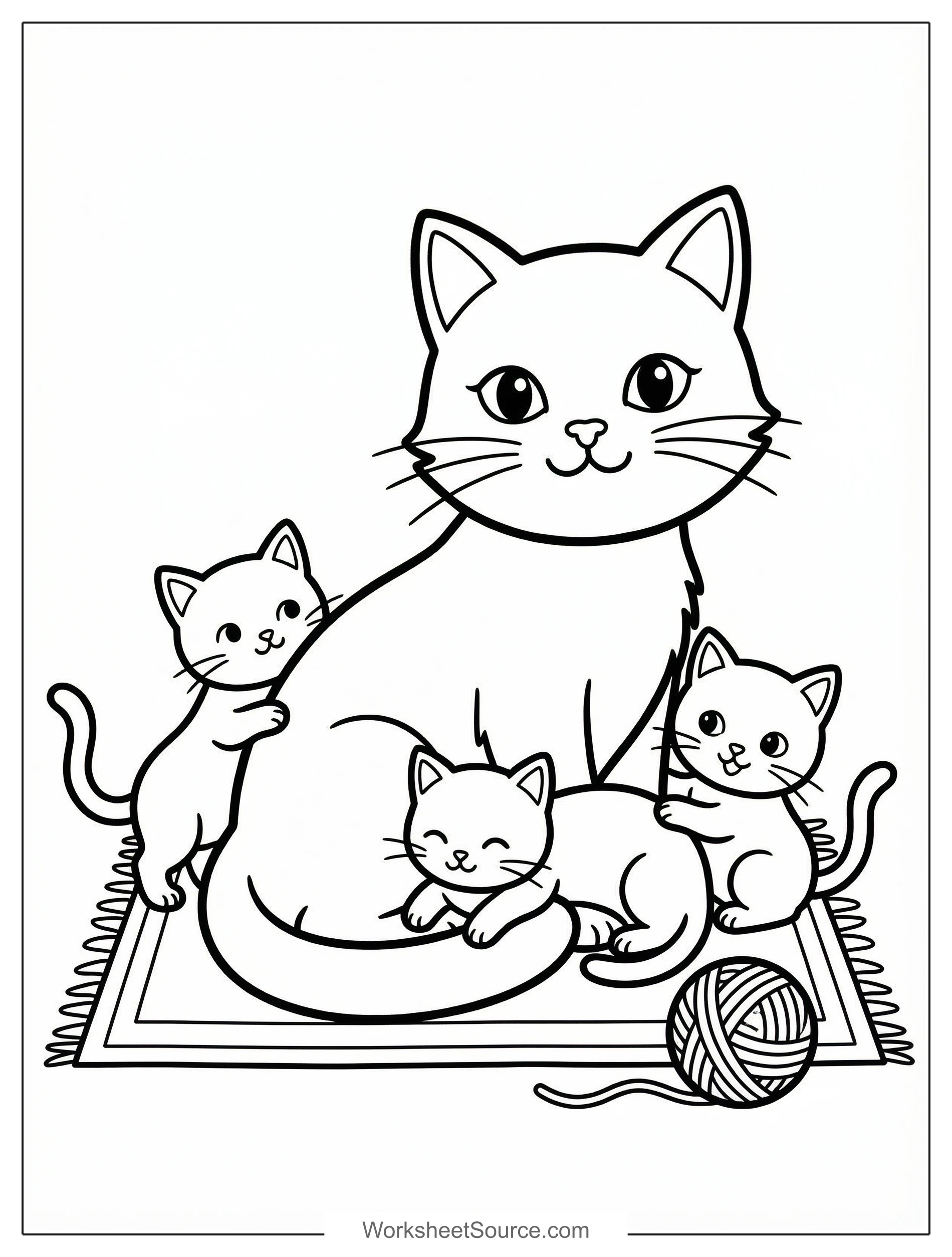 Download this free printable Cat Family coloring page for kids. Great for classroom activities, home learning, and creative fun.