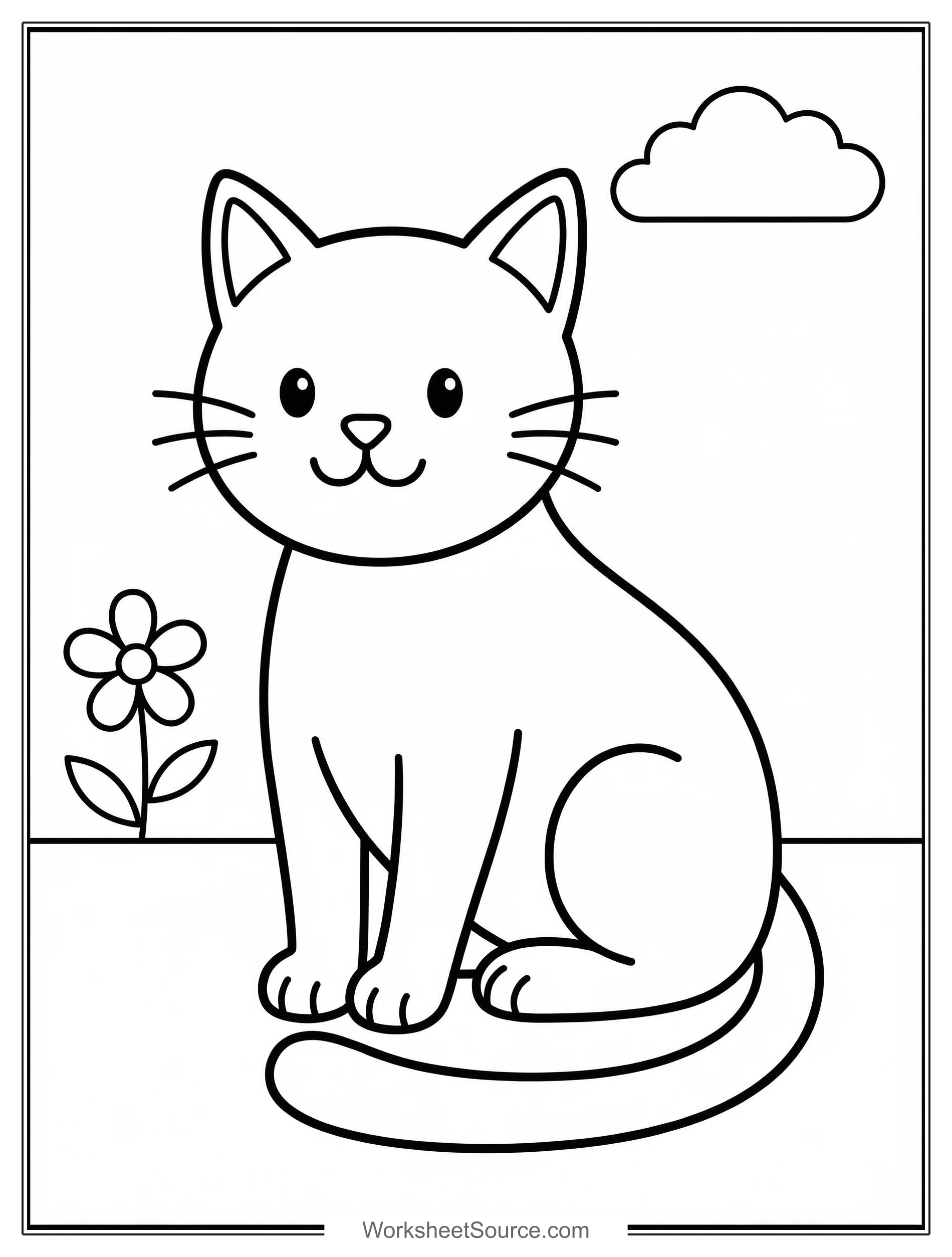 Download this free printable Sitting Cat coloring page for kids. Great for classroom activities, home learning, and creative fun.
