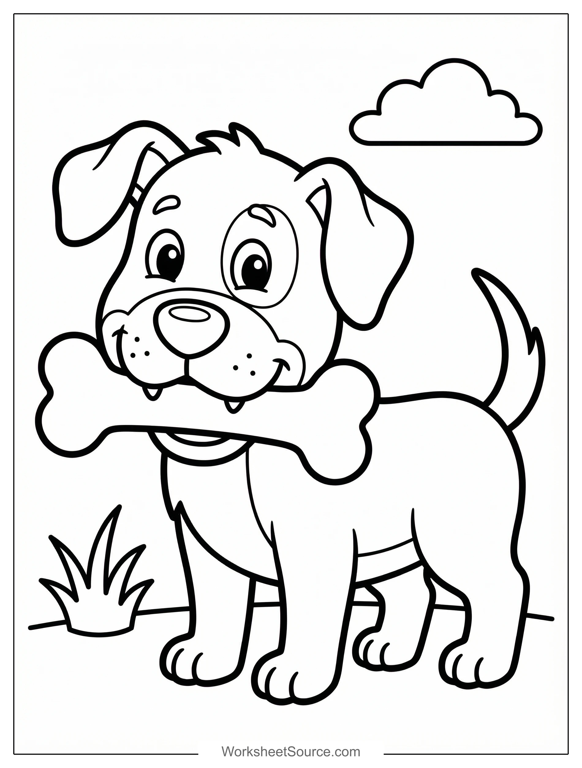 Download this free printable Dog With Bone coloring page for kids. Great for classroom activities, home learning, and creative fun.