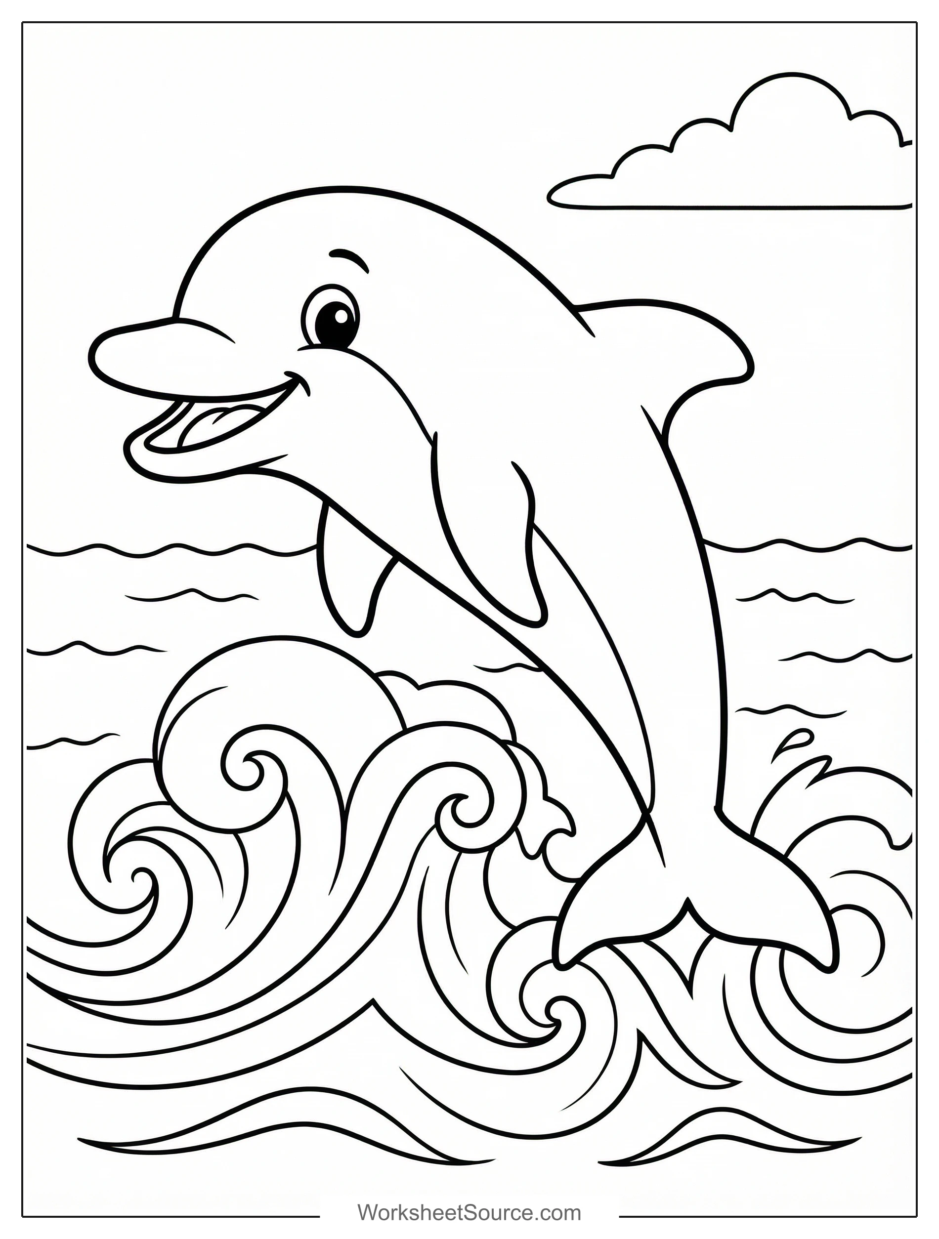 Happy Dolphin Jumping Through Waves Coloring Page