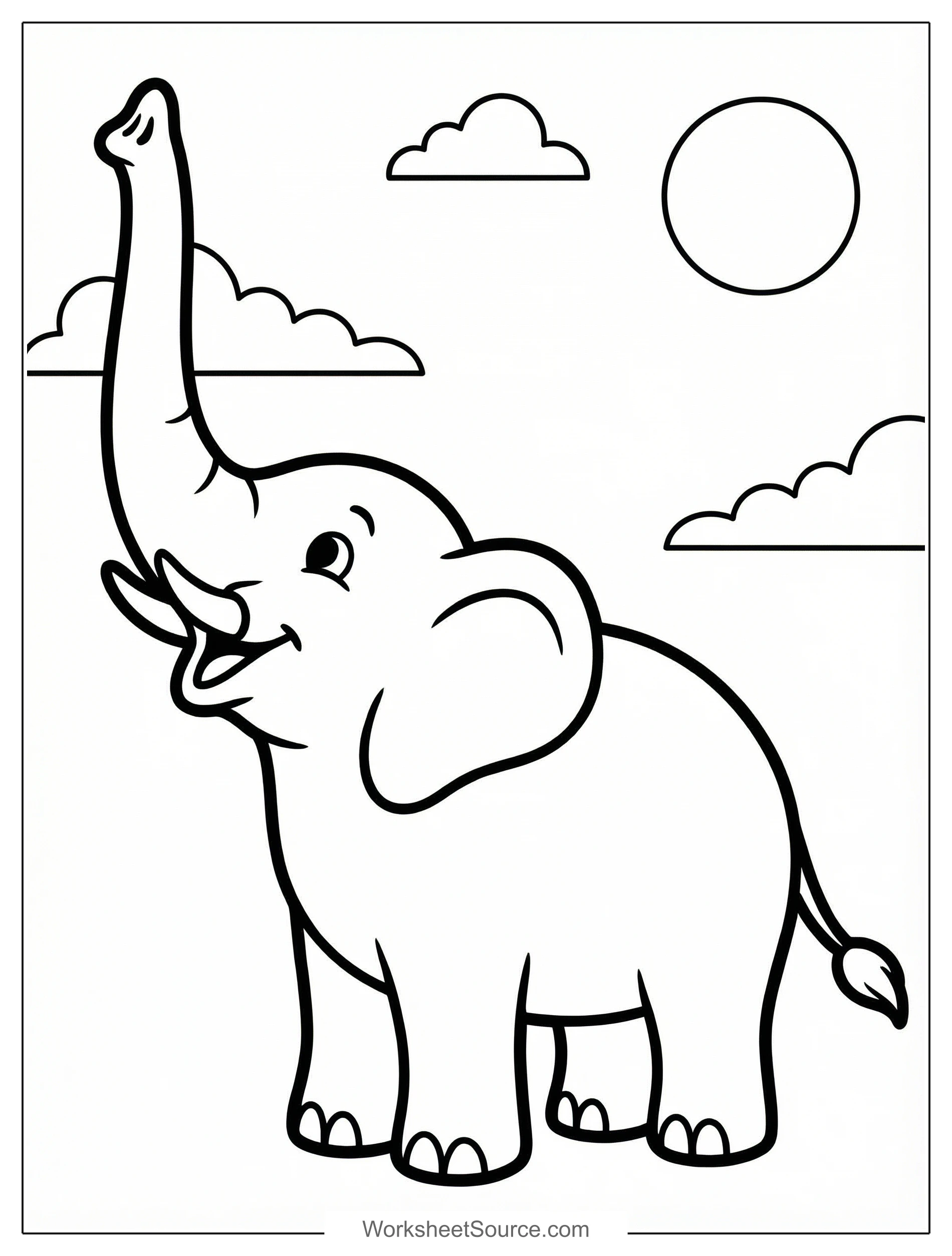 Download this free printable Elephant With Trunk Up coloring page for kids. Great for classroom activities, home learning, and creative fun.