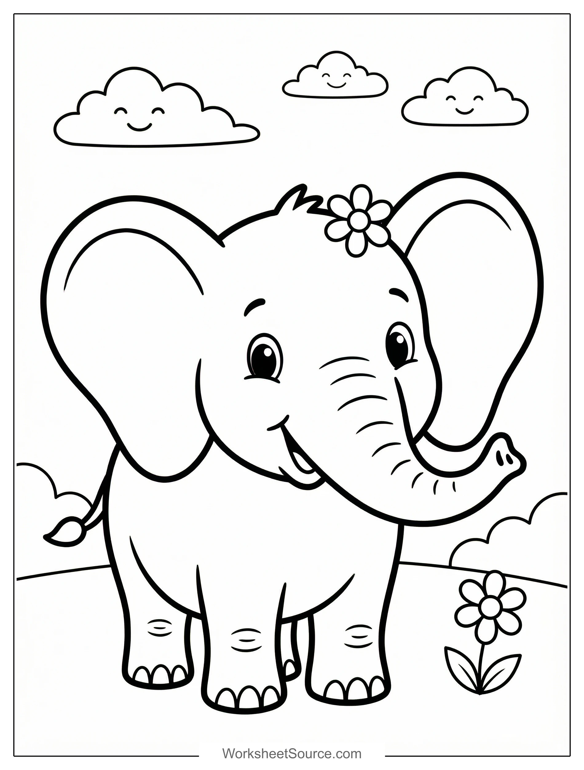 Download this free printable Friendly Elephant With Big Ears coloring page for kids. Great for classroom activities, home learning, and creative fun.