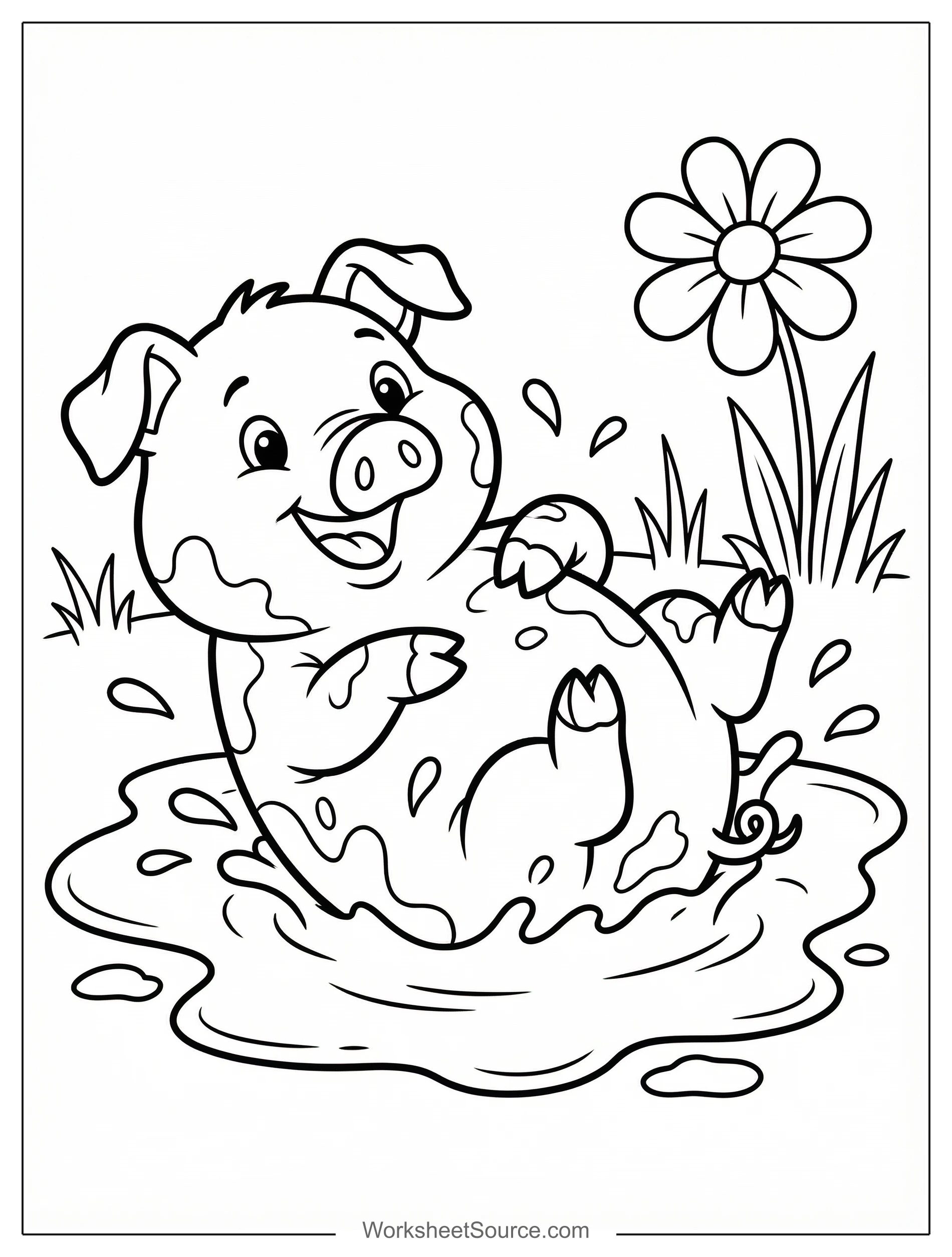 Download this free printable Pig In Mud coloring page for kids. Great for classroom activities, home learning, and creative fun.