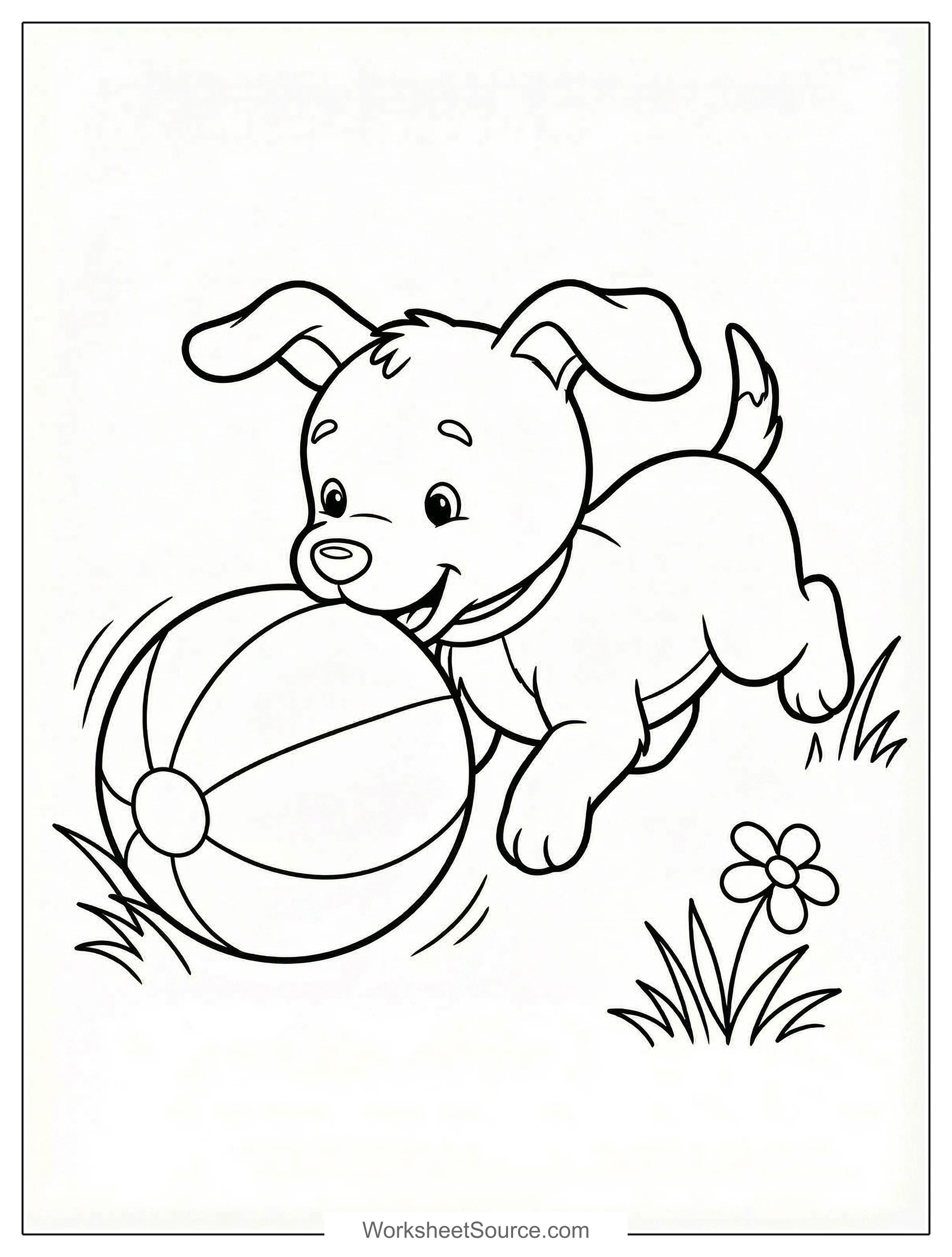 Download this free printable Cute Puppy Playing With a Ball coloring page for kids. It is great for classroom activities, home learning, and creative fun.