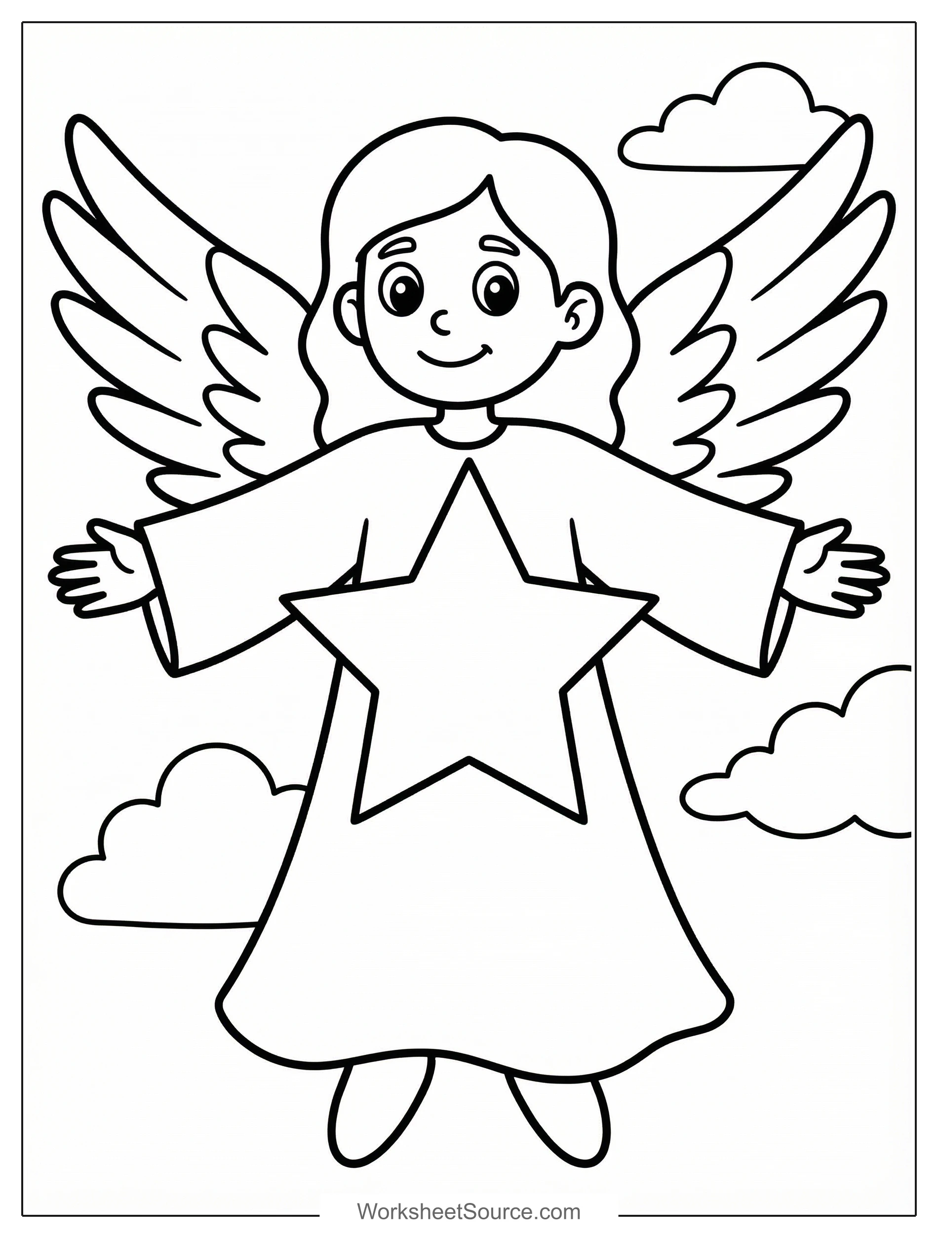 Download this free printable Angel Holding Star coloring page for kids. Great for classroom activities, home learning, and creative fun.