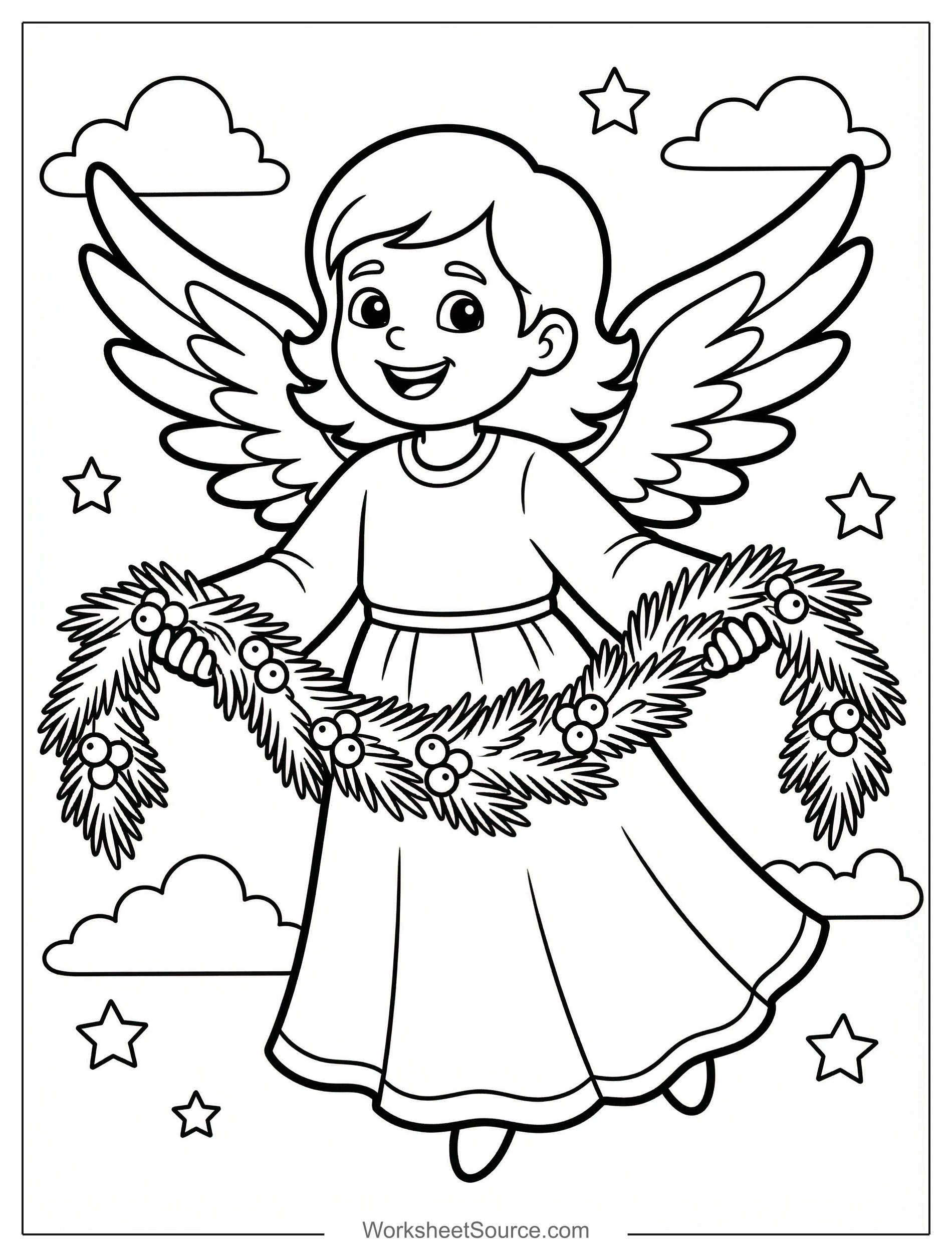 Download this free printable Angel With Garland coloring page for kids. Great for classroom activities, home learning, and creative fun.