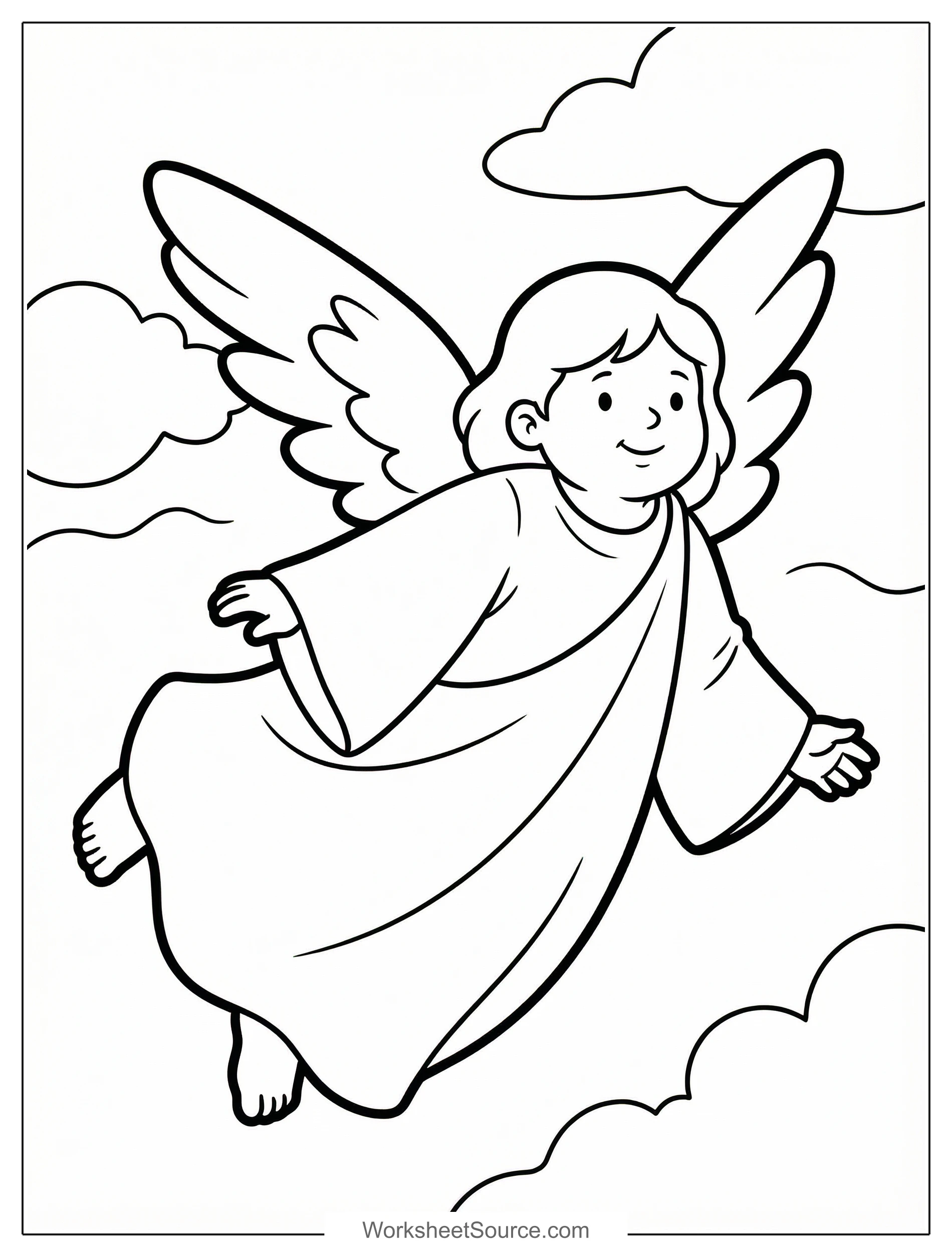 Download this free printable Flying Angel coloring page for kids. It is great for classroom activities, home learning, and creative fun.