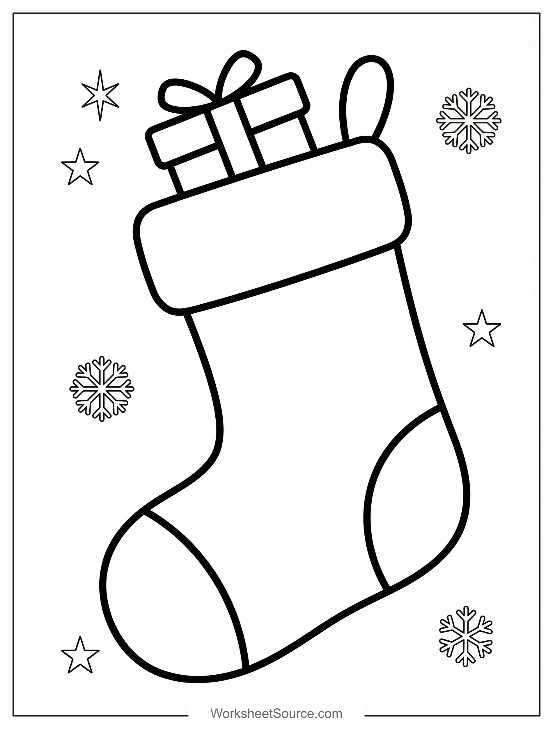 Download this free printable Present In Stocking coloring page for kids. It is great for classroom activities, home learning, and creative fun.