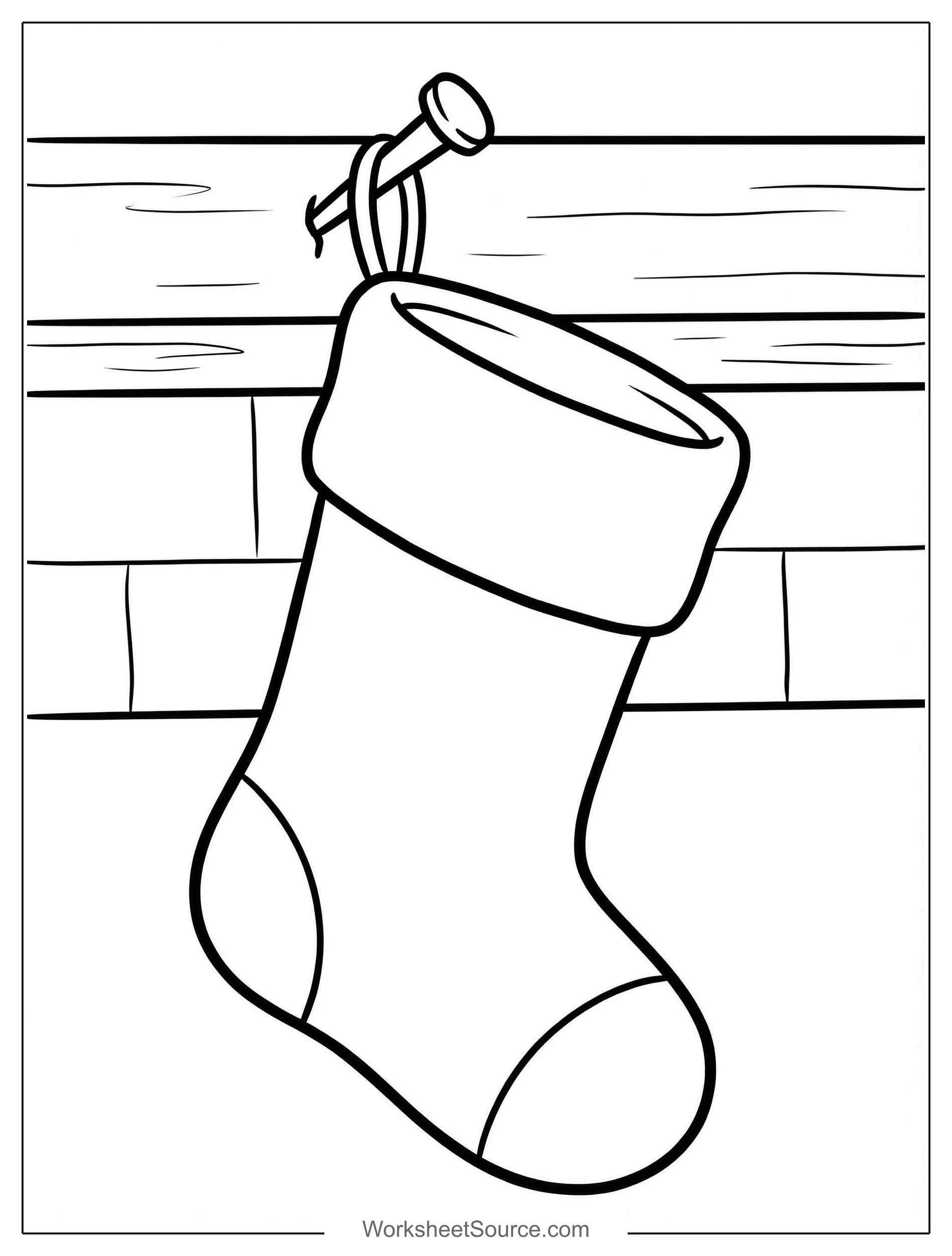 Download this free printable Hanging Christmas Stocking coloring page for kids. It is great for classroom activities, home learning, and creative fun.