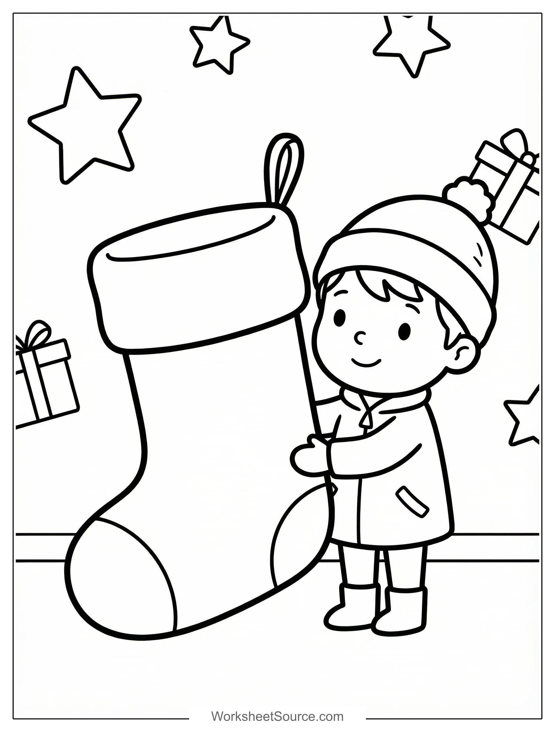 Download this free printable Oversized Stocking coloring page for kids. Great for classroom activities, home learning, and creative fun.