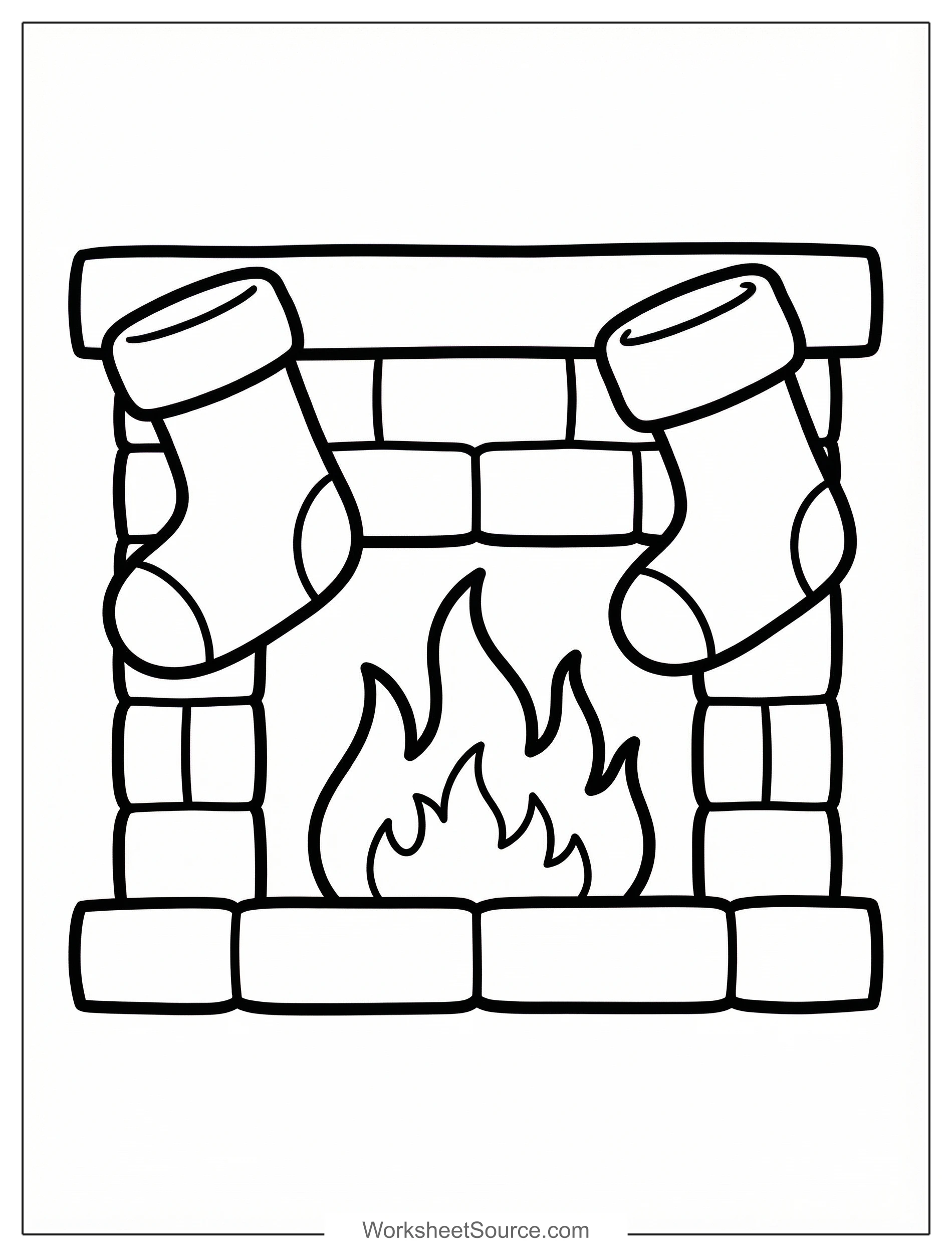Download this free printable Stocking By Fireplace coloring page for kids. Great for classroom activities, home learning, and creative fun.