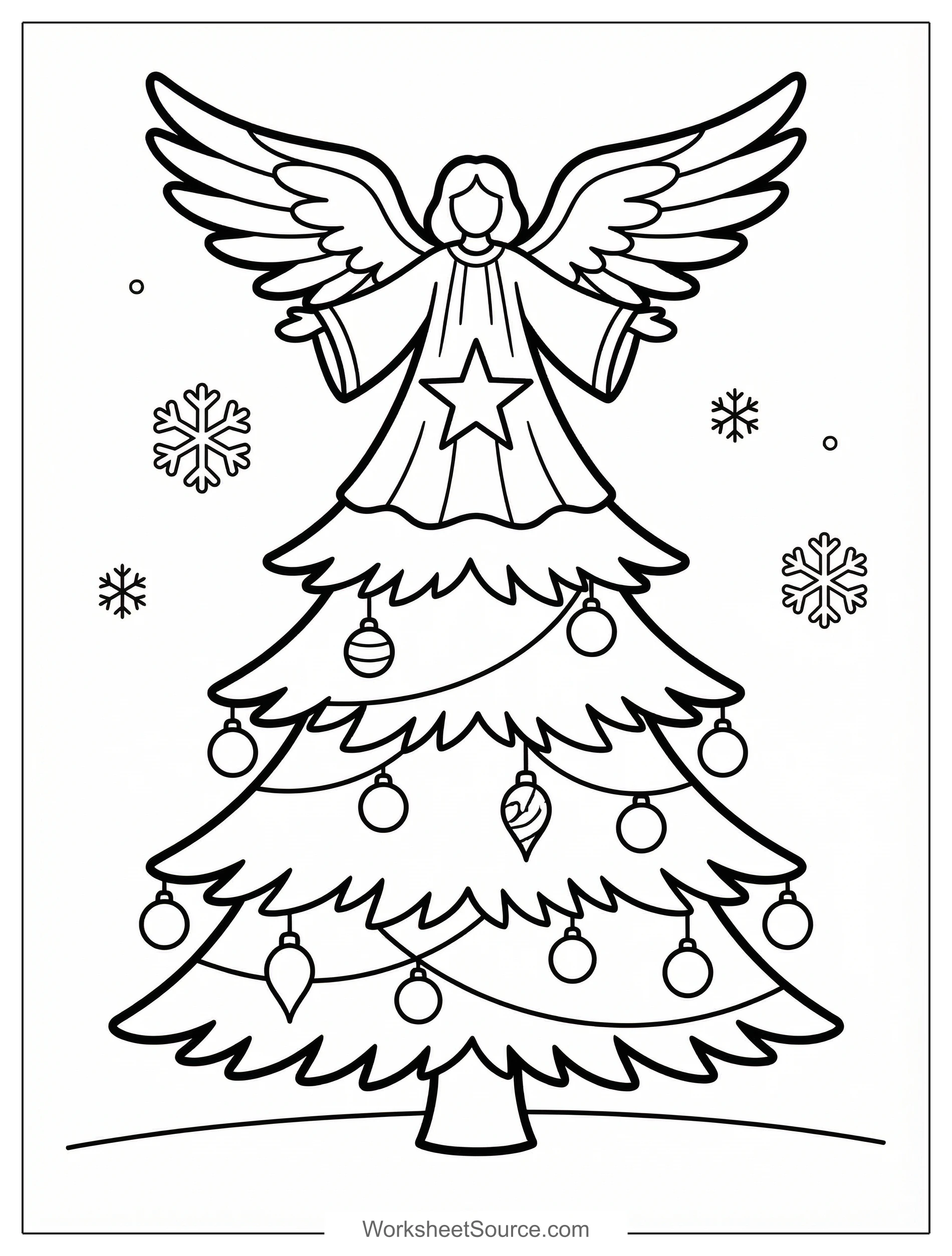 Download this free printable Christmas Tree Angel coloring page for kids. Great for classroom activities, home learning, and creative fun.