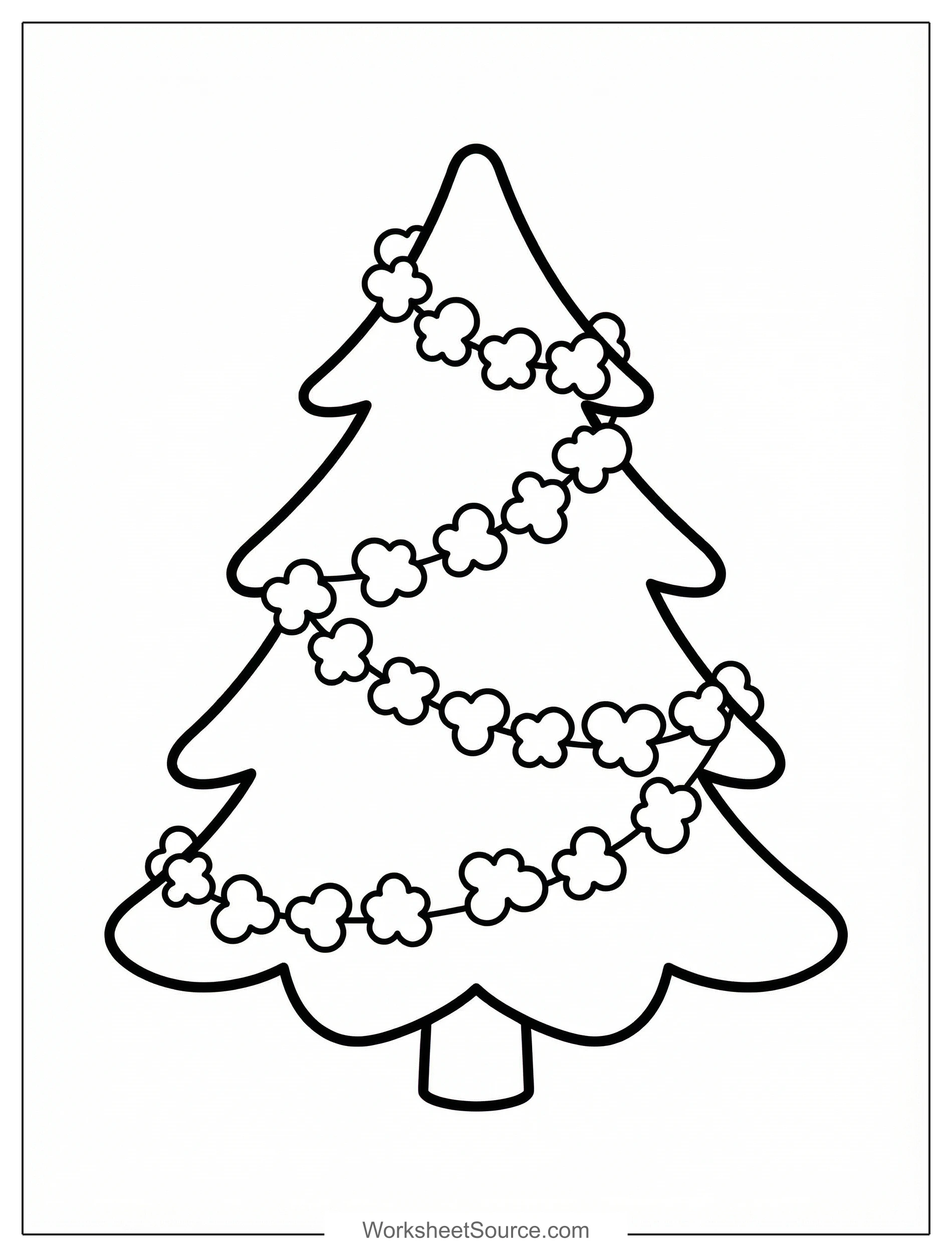 Download this free printable Christmas Tree With Garland coloring page for kids. Great for classroom activities, home learning, and creative fun.