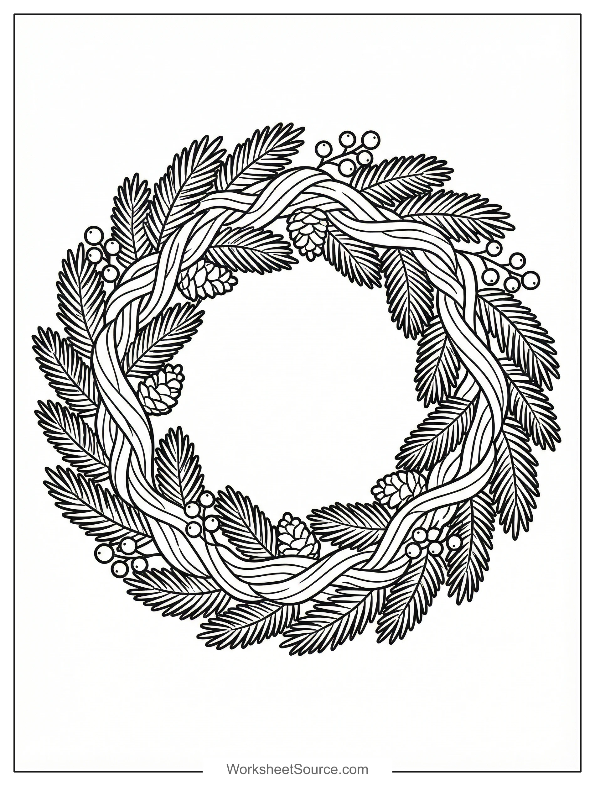 Download this free printable Evergreen Wreath coloring page for kids. It is great for classroom activities, home learning, and creative fun.