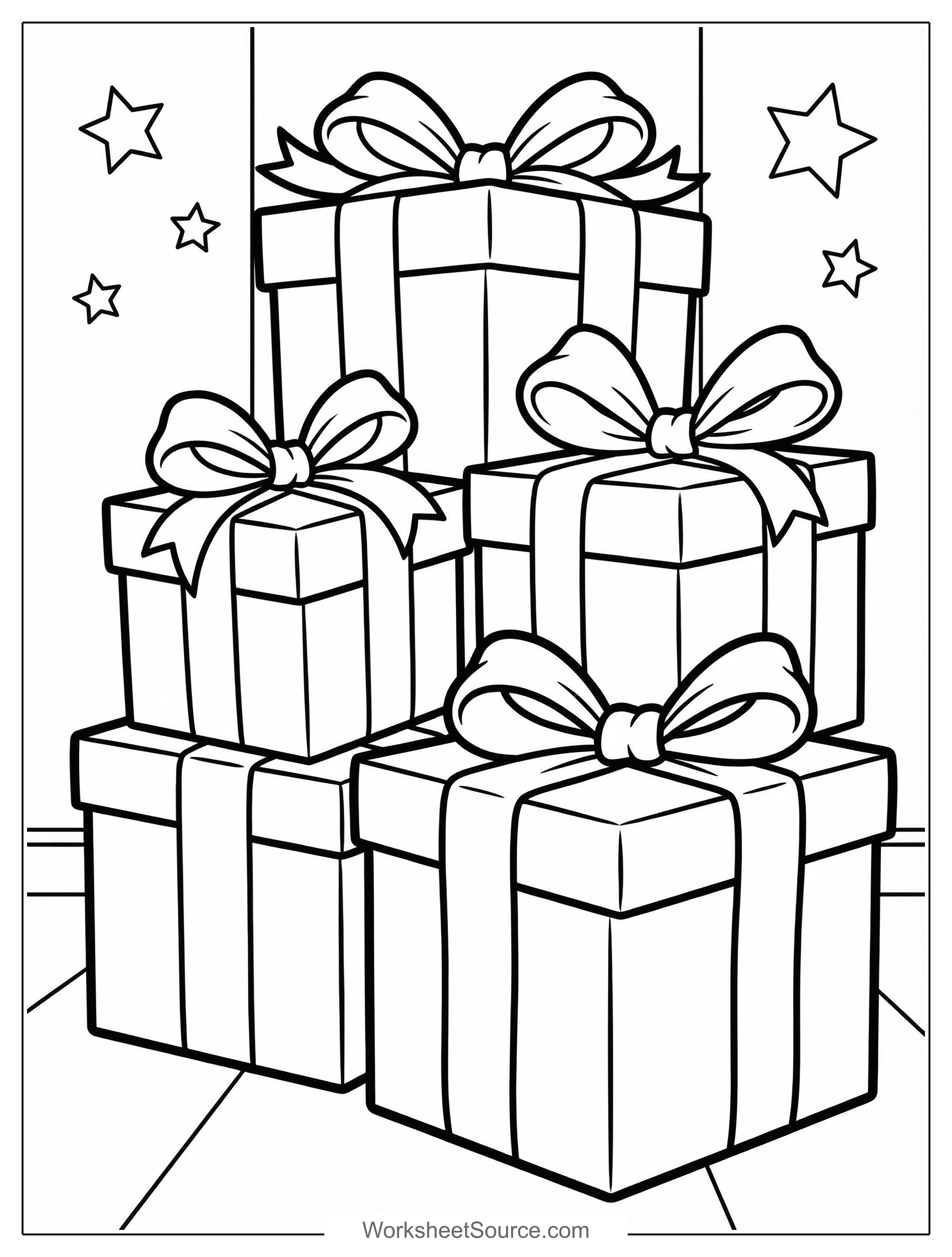 About This Gift Boxes With Ribbons and Bows Coloring Page