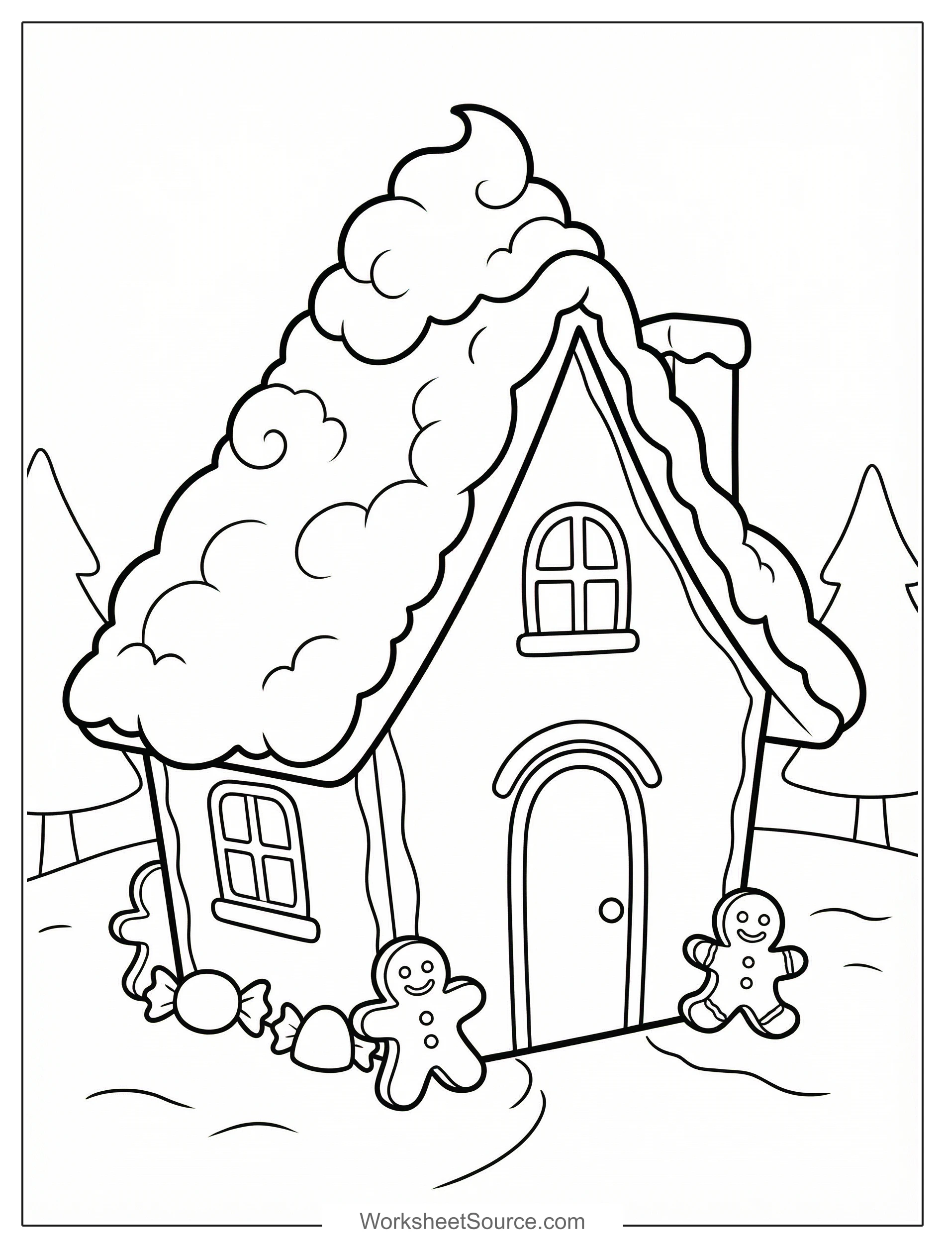 Download this free printable Gingerbread House With Snow coloring page for kids. It is great for classroom activities, home learning, and creative fun.
