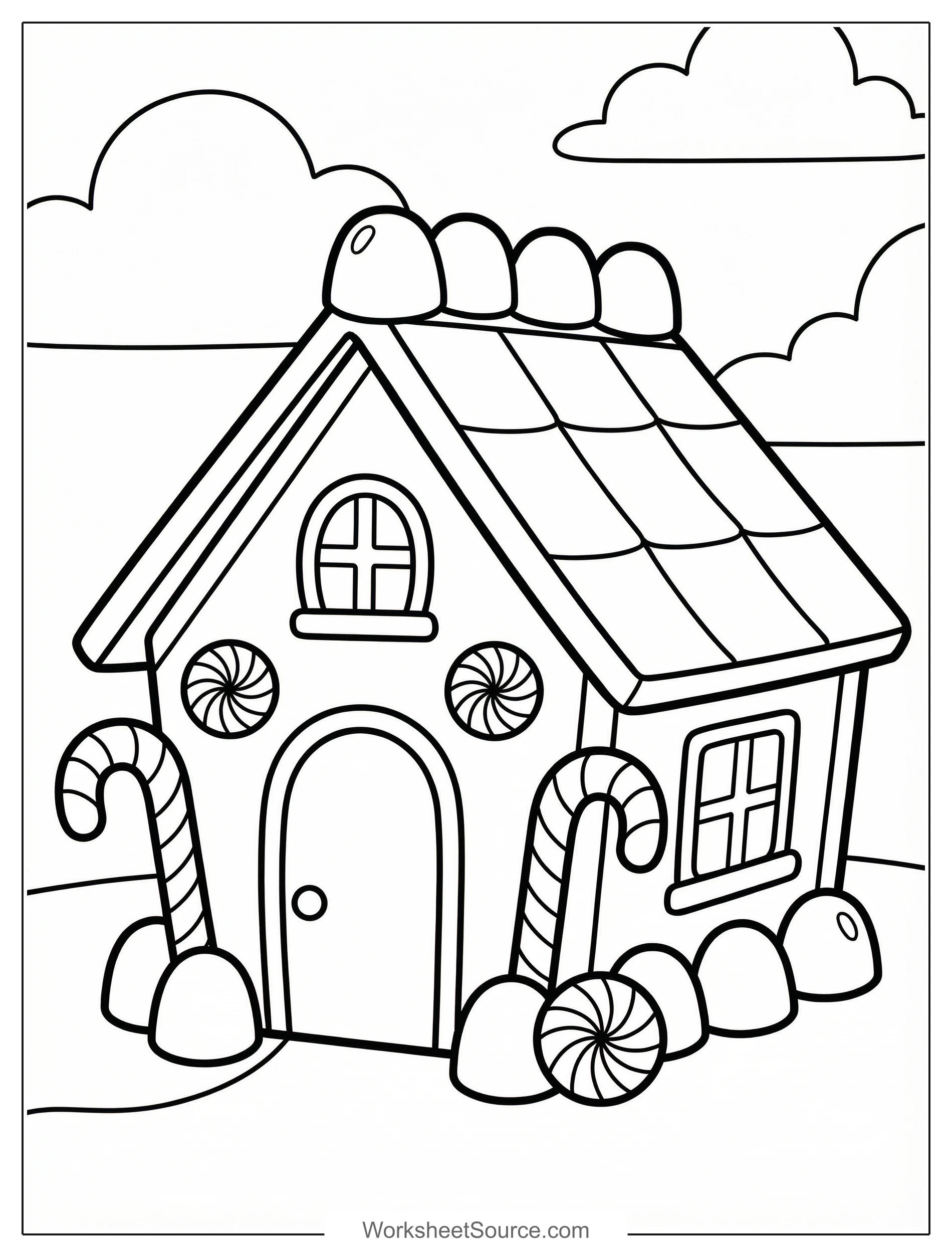 Download this free printable Gingerbread House With Candy Decorations coloring page for kids. It is great for classroom activities, home learning, and creative fun.