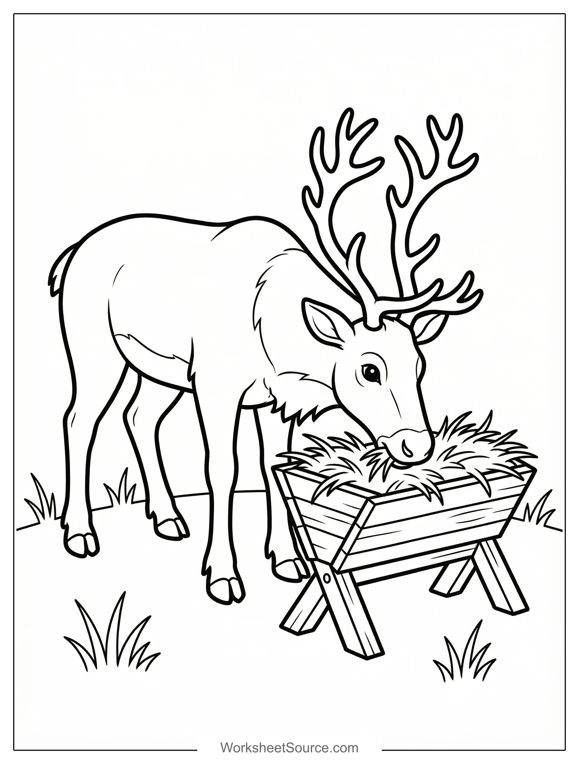 Download this free printable Reindeer Eating Hay coloring page for kids. Great for classroom activities, home learning, and creative fun.