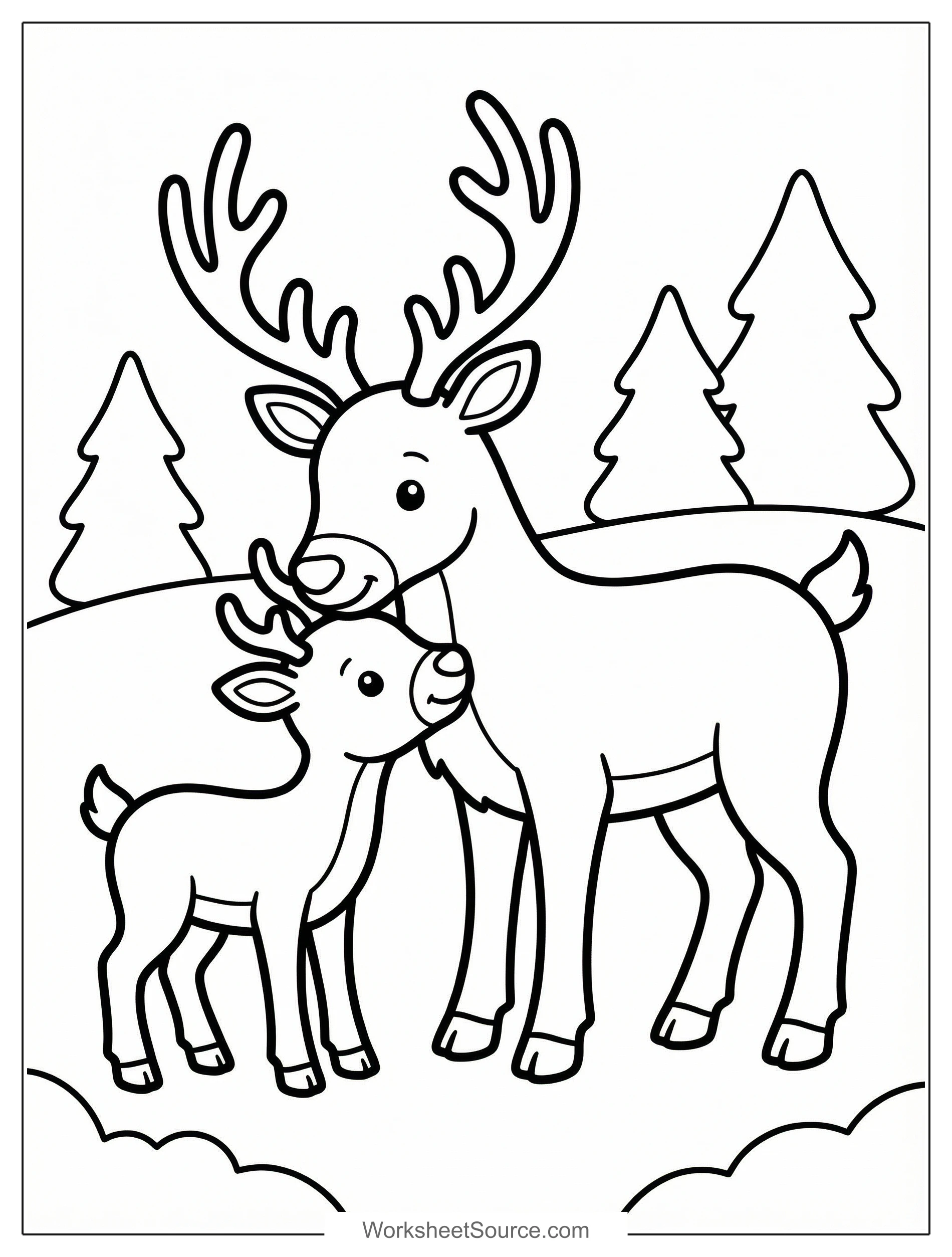 Download this free printable Reindeer Family coloring page for kids. Great for classroom activities, home learning, and creative fun.