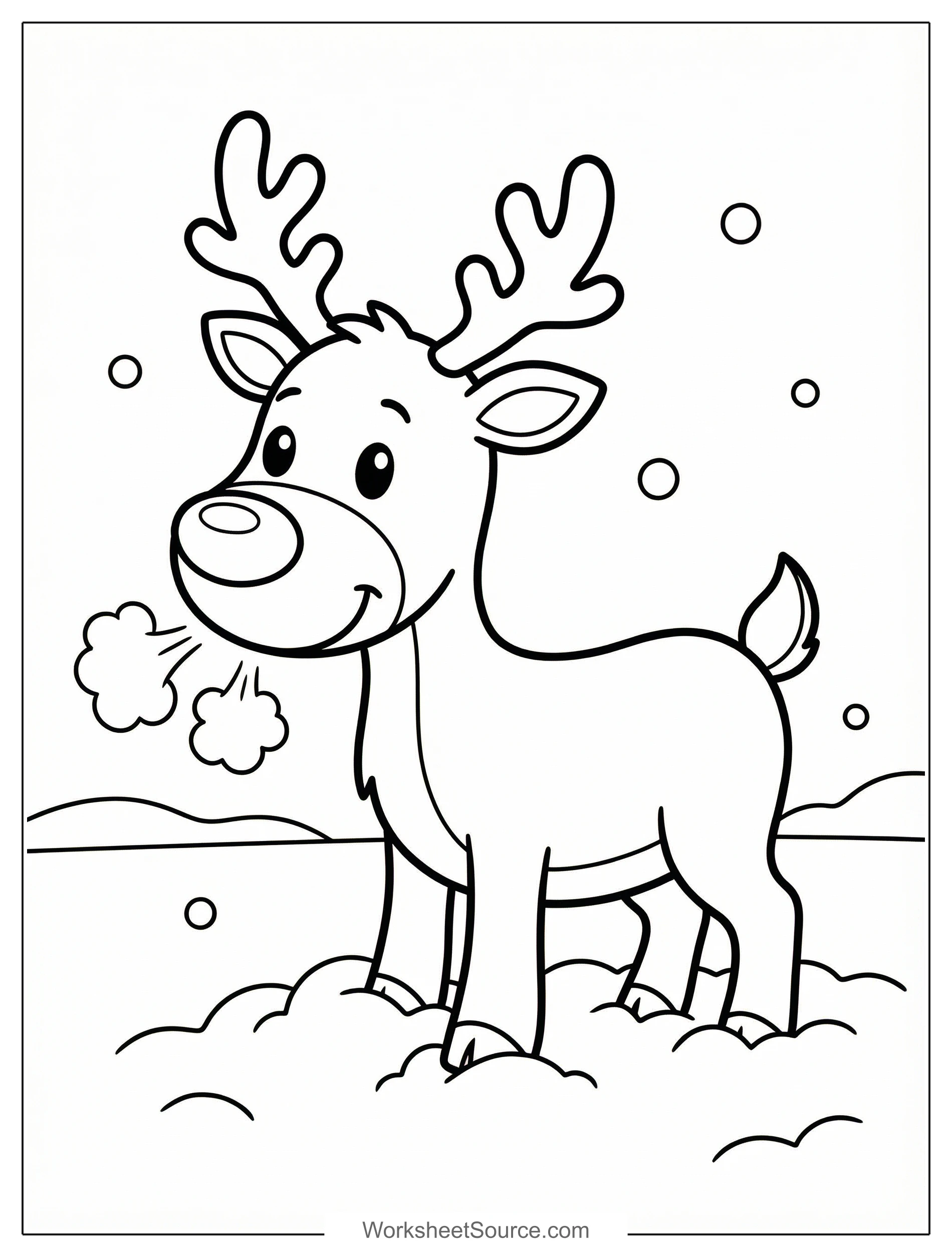 Download this free printable Reindeer In Snow coloring page for kids. It is great for classroom activities, home learning, and creative fun.