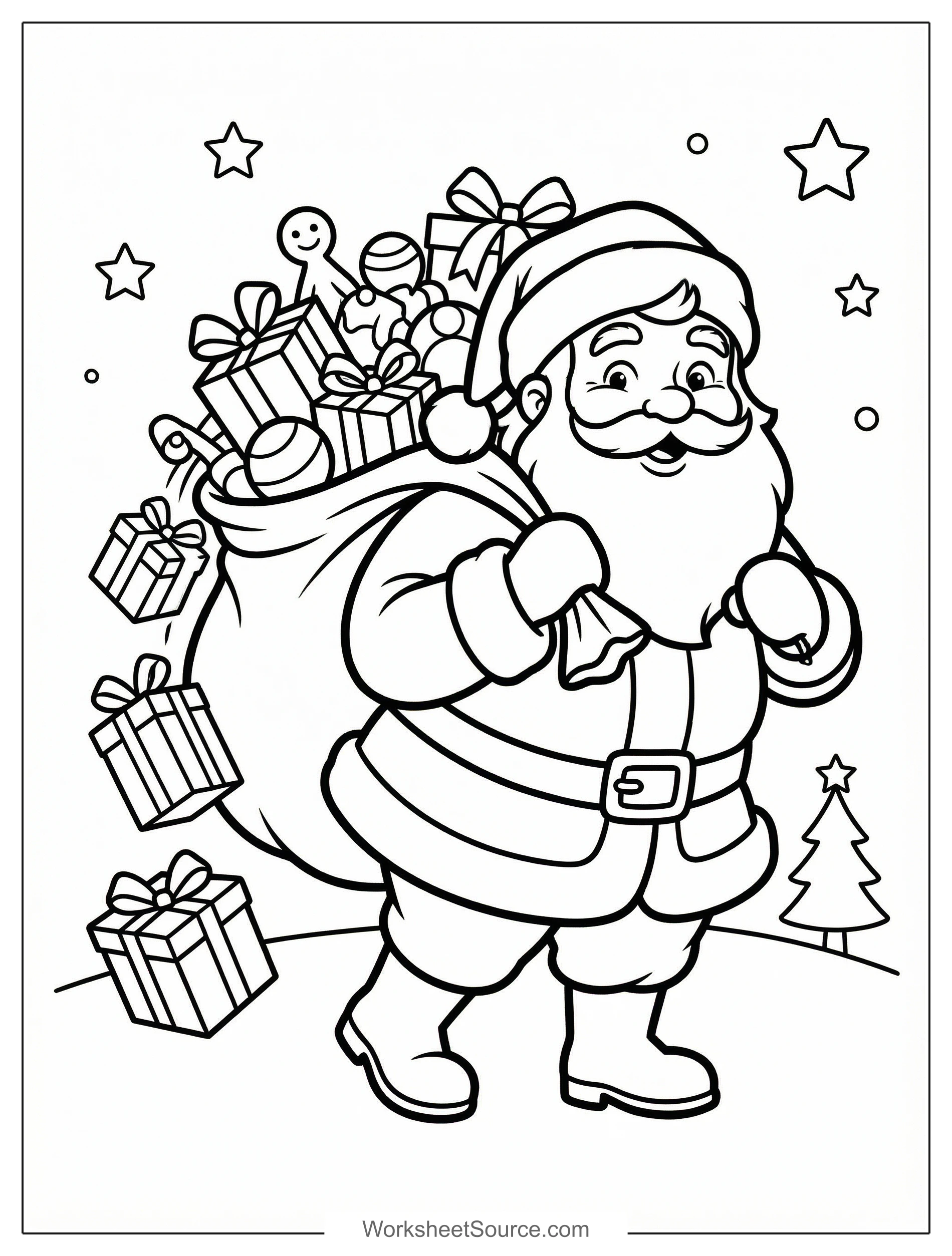 Download this free printable Santa With Gift Sack coloring page for kids. Great for classroom activities, home learning, and creative fun.