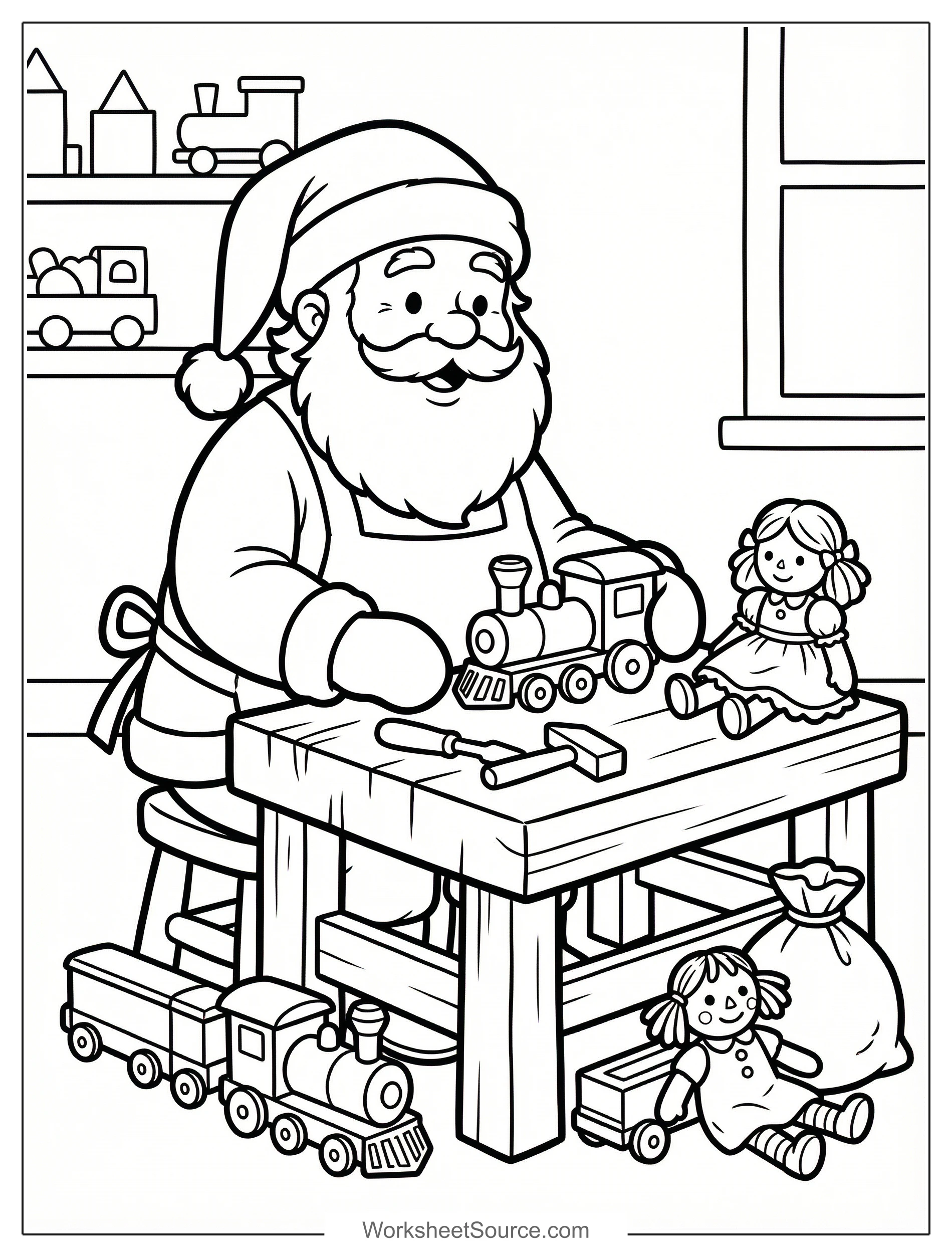 Download this free printable Santa Workshop coloring page for kids. Great for classroom activities, home learning, and creative fun.
