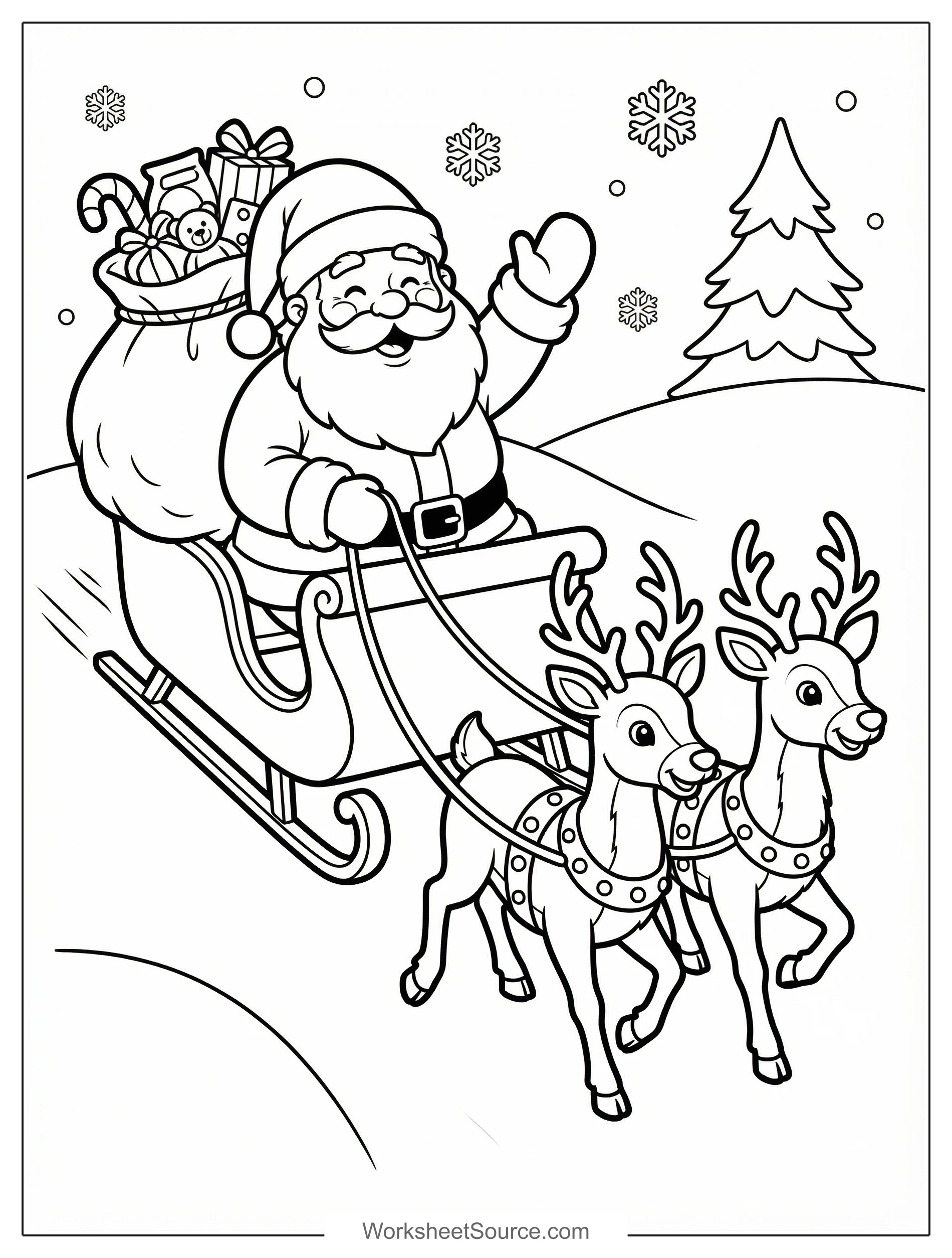 About This Santa Claus With Gift Bag and Sleigh Coloring Page