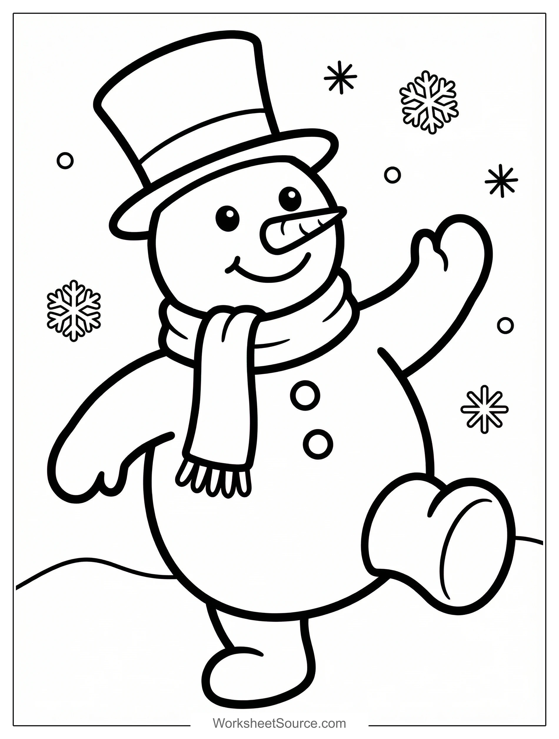 Download this free printable Dancing Snowman coloring page for kids. Great for classroom activities, home learning, and creative fun.