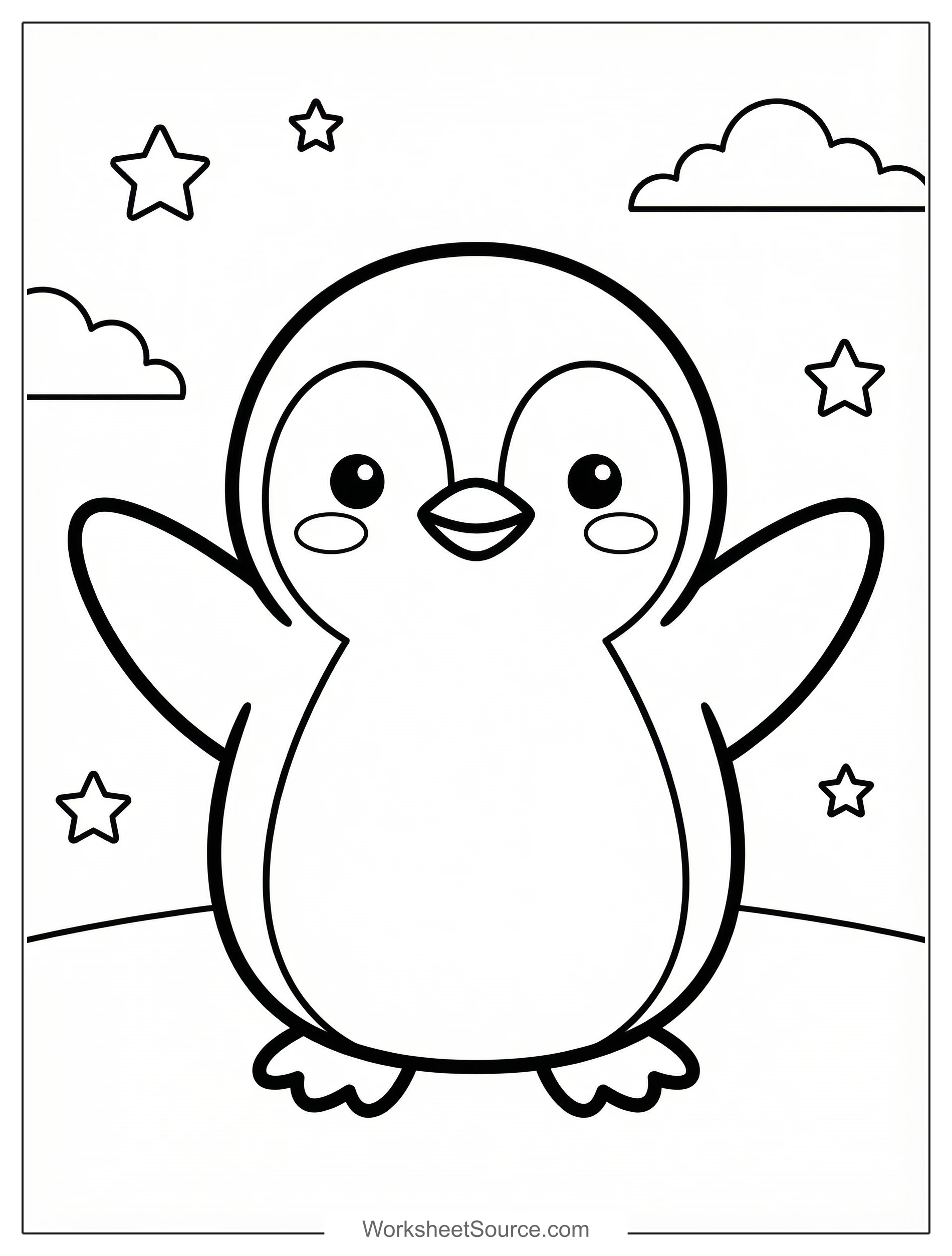 Download this free printable Kawaii Penguin coloring page for kids. Great for classroom activities, home learning, and creative fun.