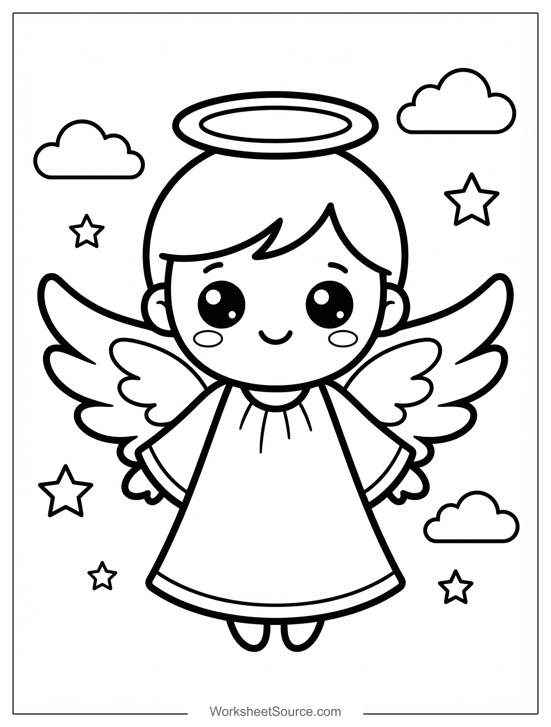 Download this free printable Kawaii Angel coloring page for kids. Great for classroom activities, home learning, and creative fun.