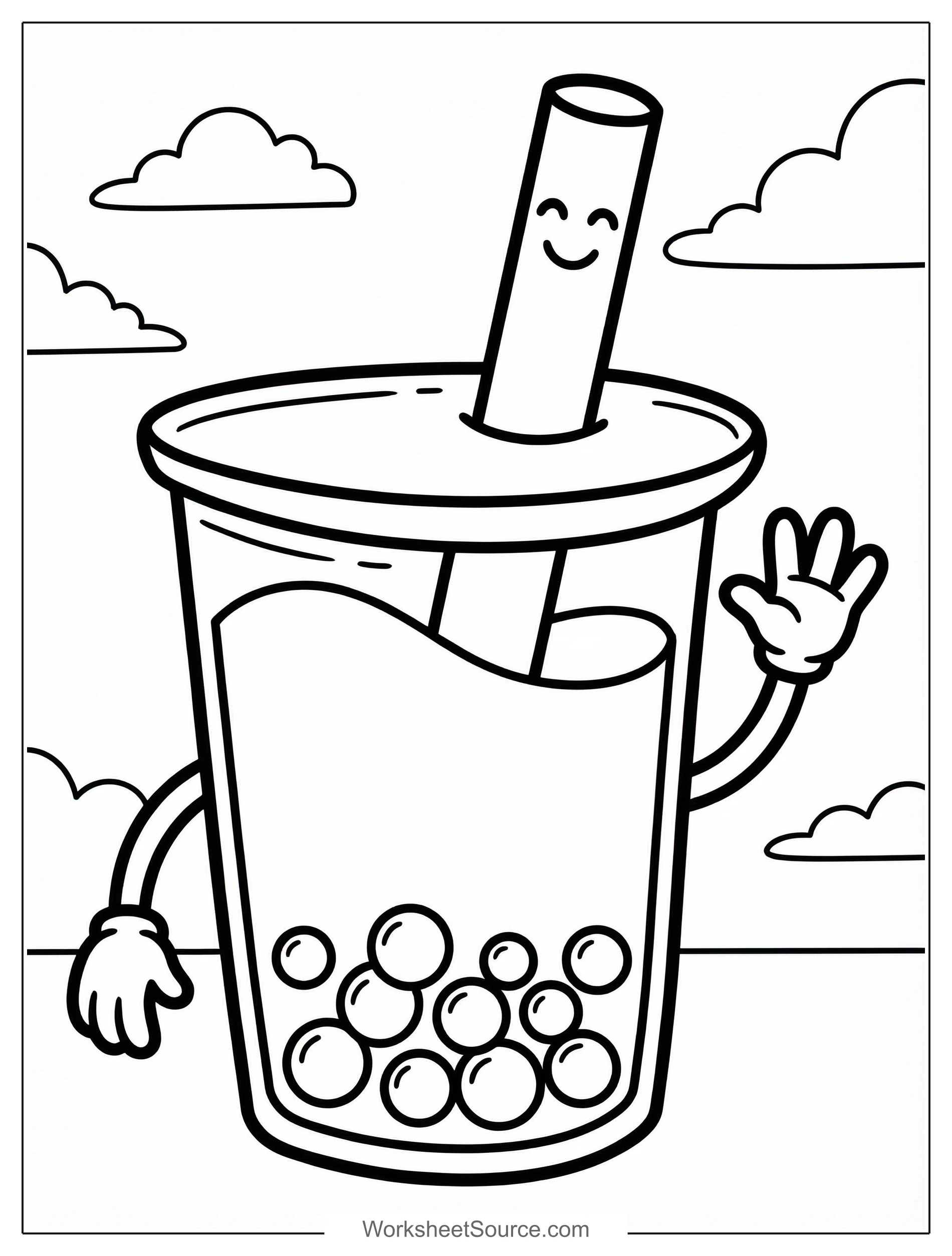 Kawaii Bubble Tea Coloring Page