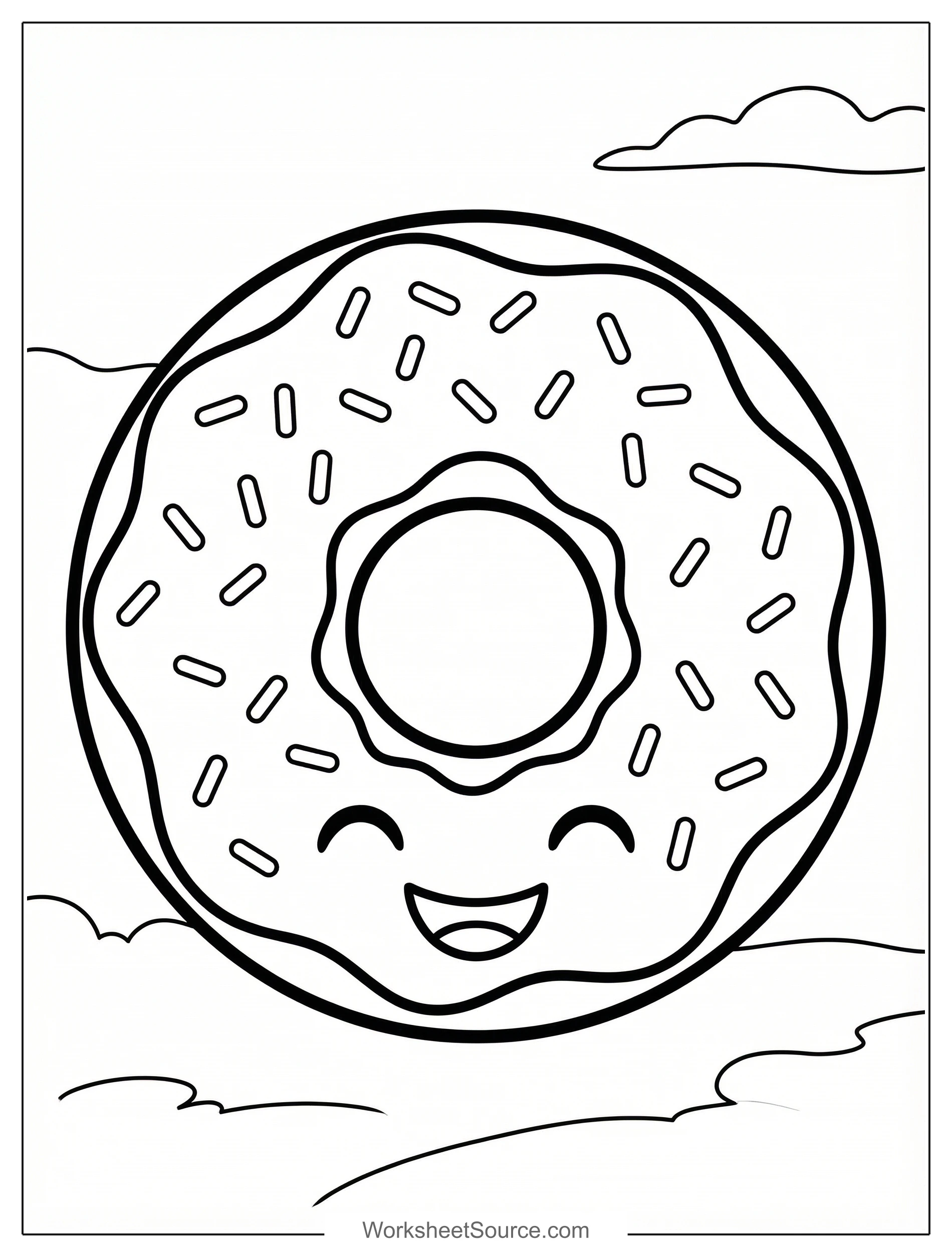 Download this free printable Kawaii Donut coloring page for kids. Great for classroom activities, home learning, and creative fun.