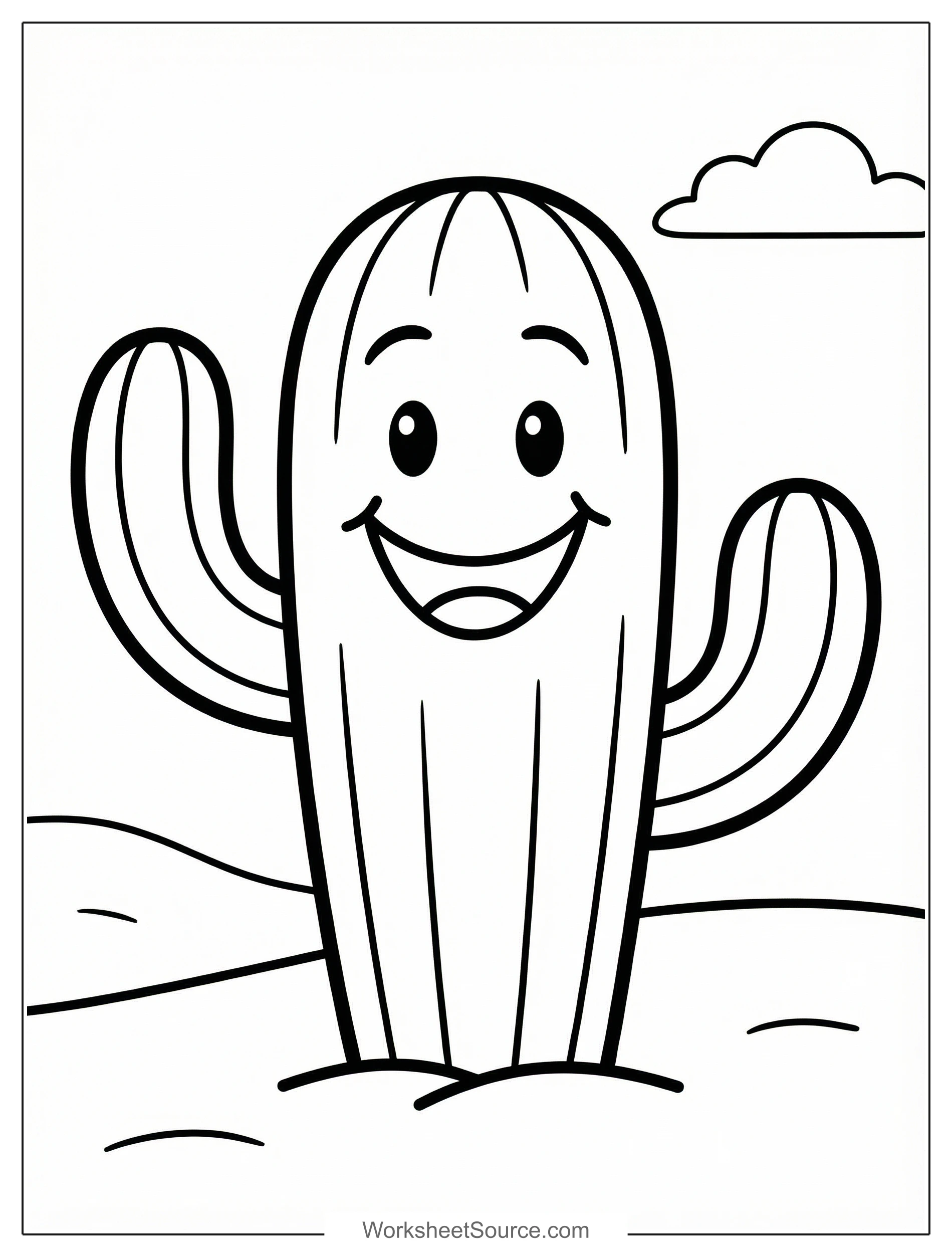 Download this free printable Kawaii Cactus coloring page for kids. It is great for classroom activities, home learning, and creative fun.