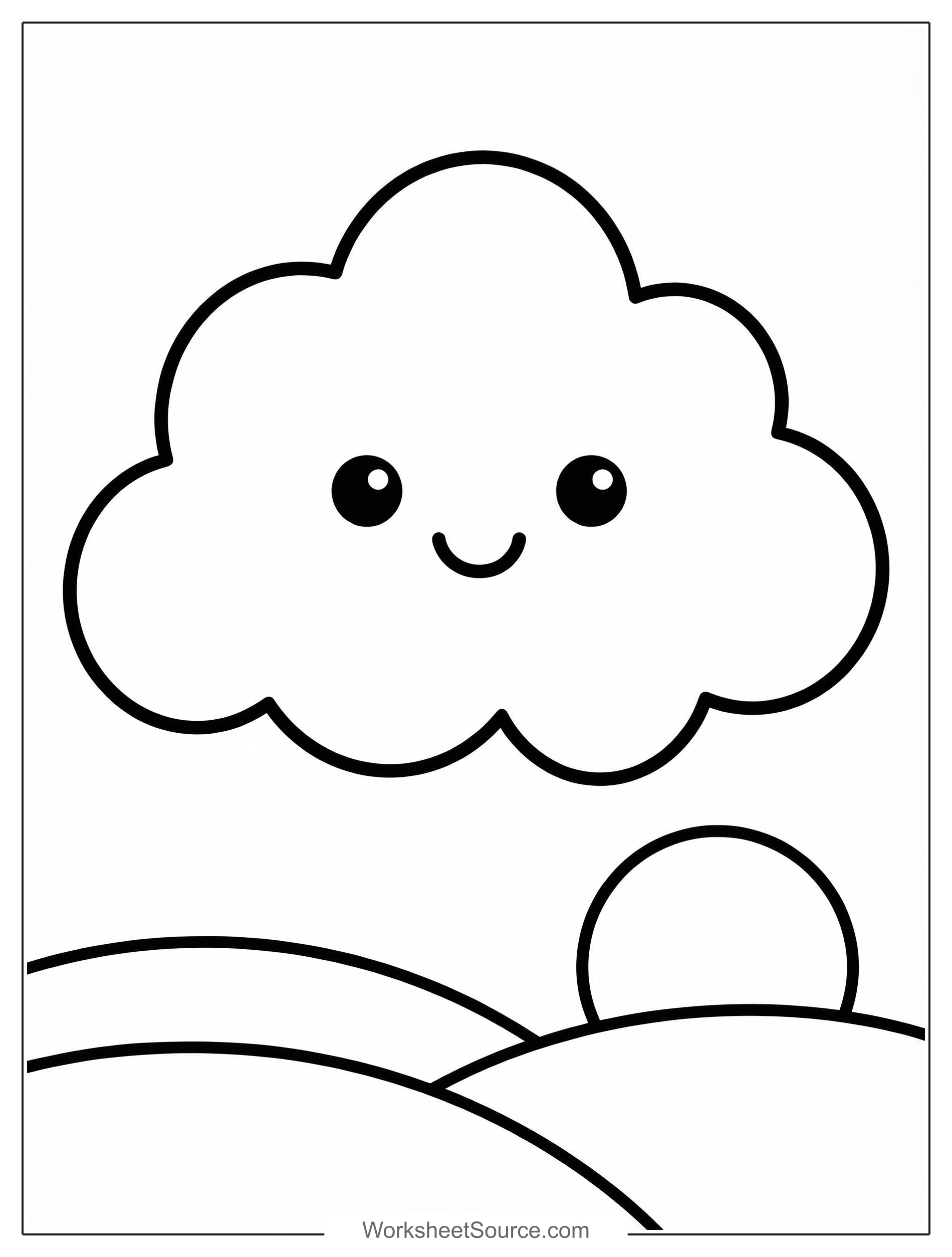 Download this free printable Kawaii Cloud coloring page for kids. It is great for classroom activities, home learning, and creative fun.