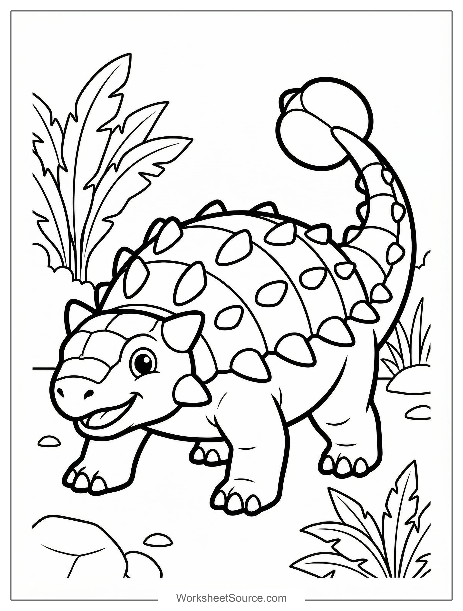 Download this free printable Armored Ankylosaurus With Club Tail coloring page for kids. Great for classroom activities, home learning, and creative fun.