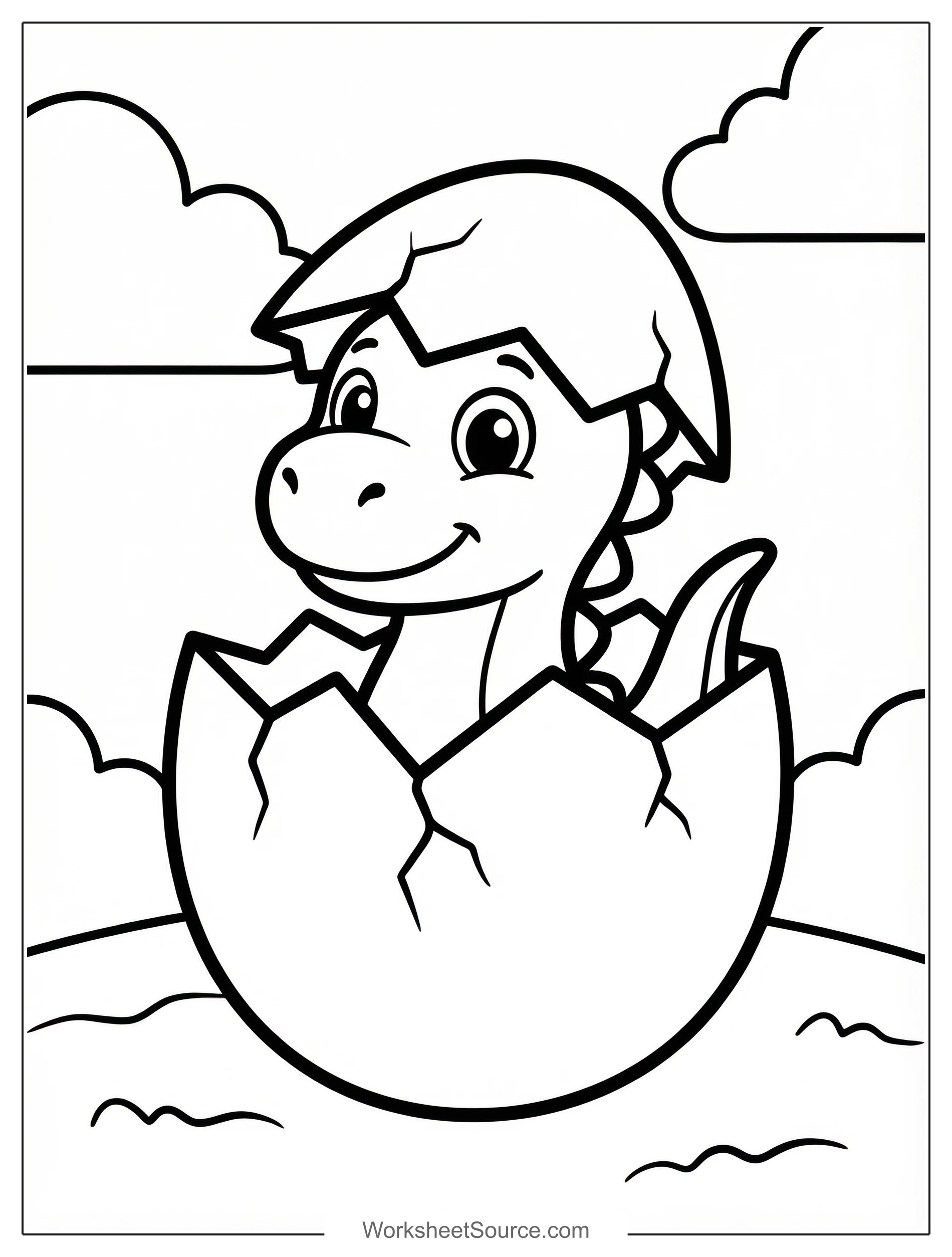 Download this free printable Baby Dinosaur Hatching From Egg coloring page for kids. Great for classroom activities, home learning, and creative fun.