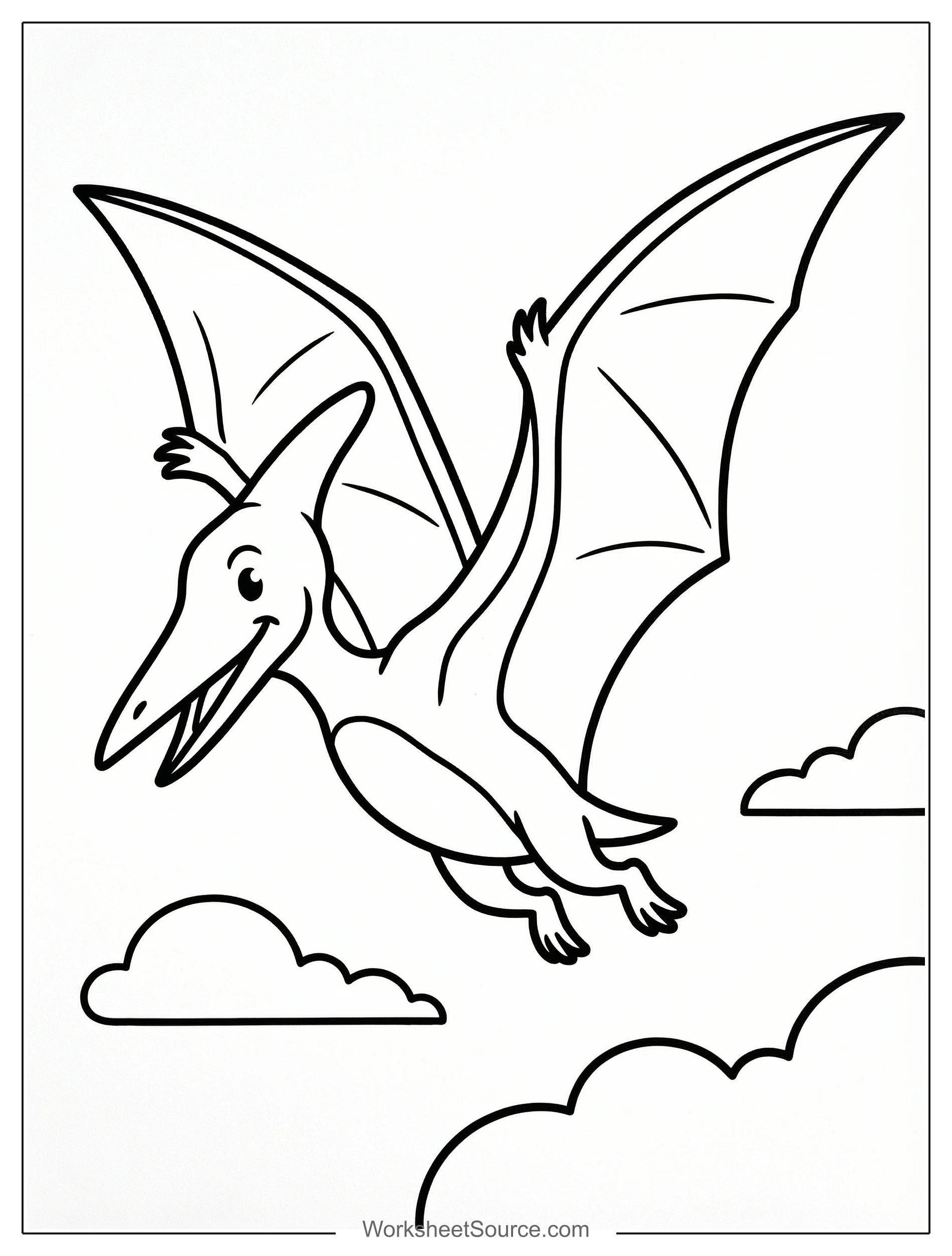 Download this free printable Pterodactyl Flying High coloring page for kids. It is great for classroom activities, home learning, and creative fun.