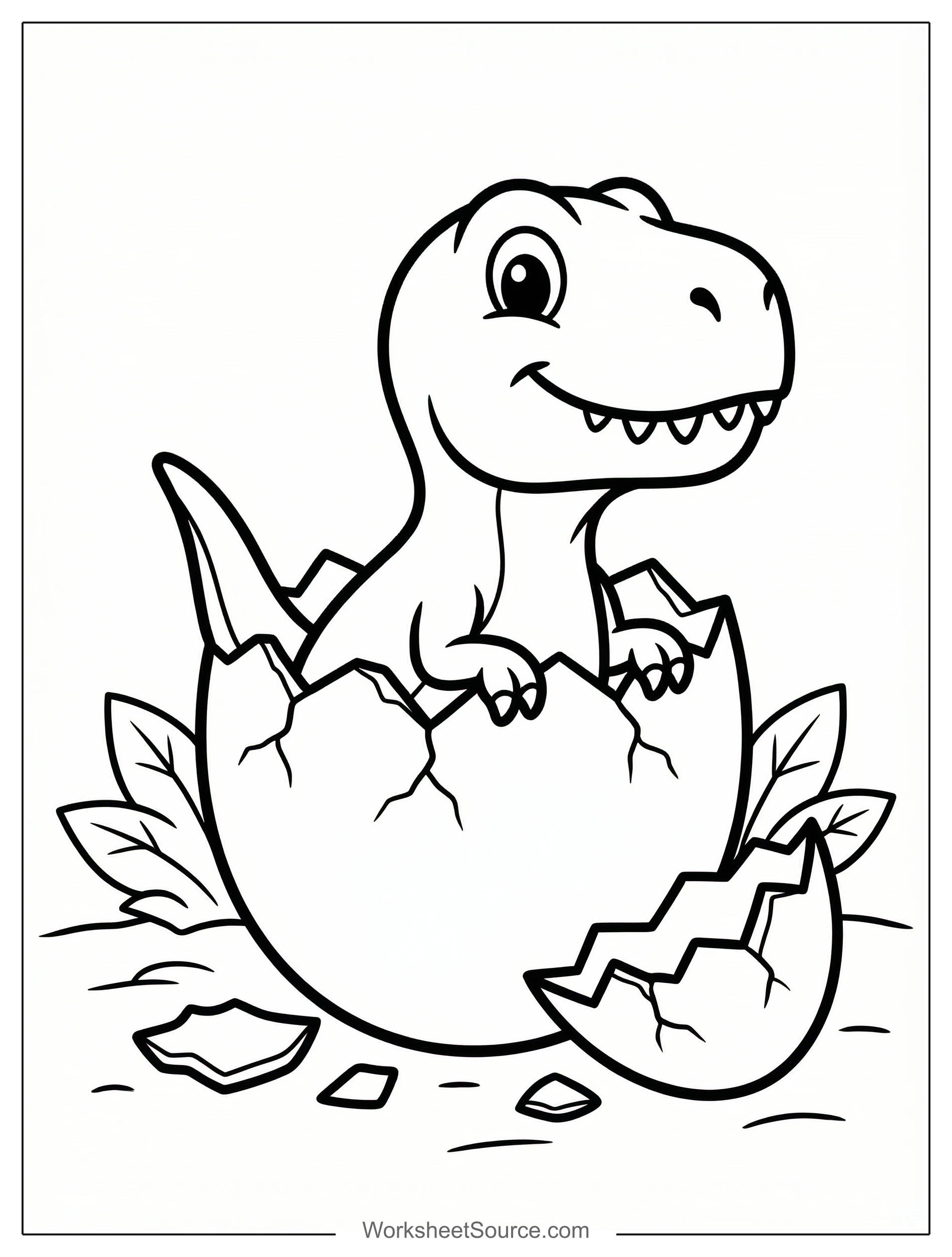 Download this free printable Baby T. Rex Hatching coloring page for kids. Great for classroom activities, home learning, and creative fun.