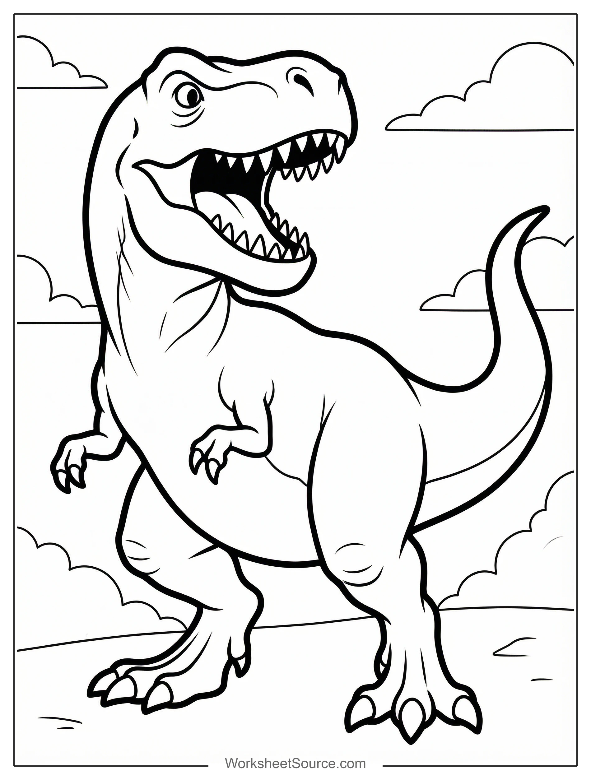 Coloring a T Rex Roaring Loud coloring page is a blast because it lets kids imagine a powerful dinosaur coming to life on the page. Picture the big teeth and open mouth, and invite children to choose bold colors or imagined patterns like stripes or spots. This printable is perfect for a classroom dinosaur center where students can color, then display their work on a bulletin board to create a roaring mural. At home it makes a rainy afternoon lively. Parents can read a short dino book while kids color, and then ask them to describe where their T Rex lives. For a creative extension try a writing prompt, have children name their T Rex and write a short story about its adventure, or let them add a volcano or jungle background. Teachers can use it for a group project by having each student color a different dinosaur and assemble a prehistoric scene. The printable nature makes copies easy, and the bold lines are great for crayons, markers, or colored pencils.