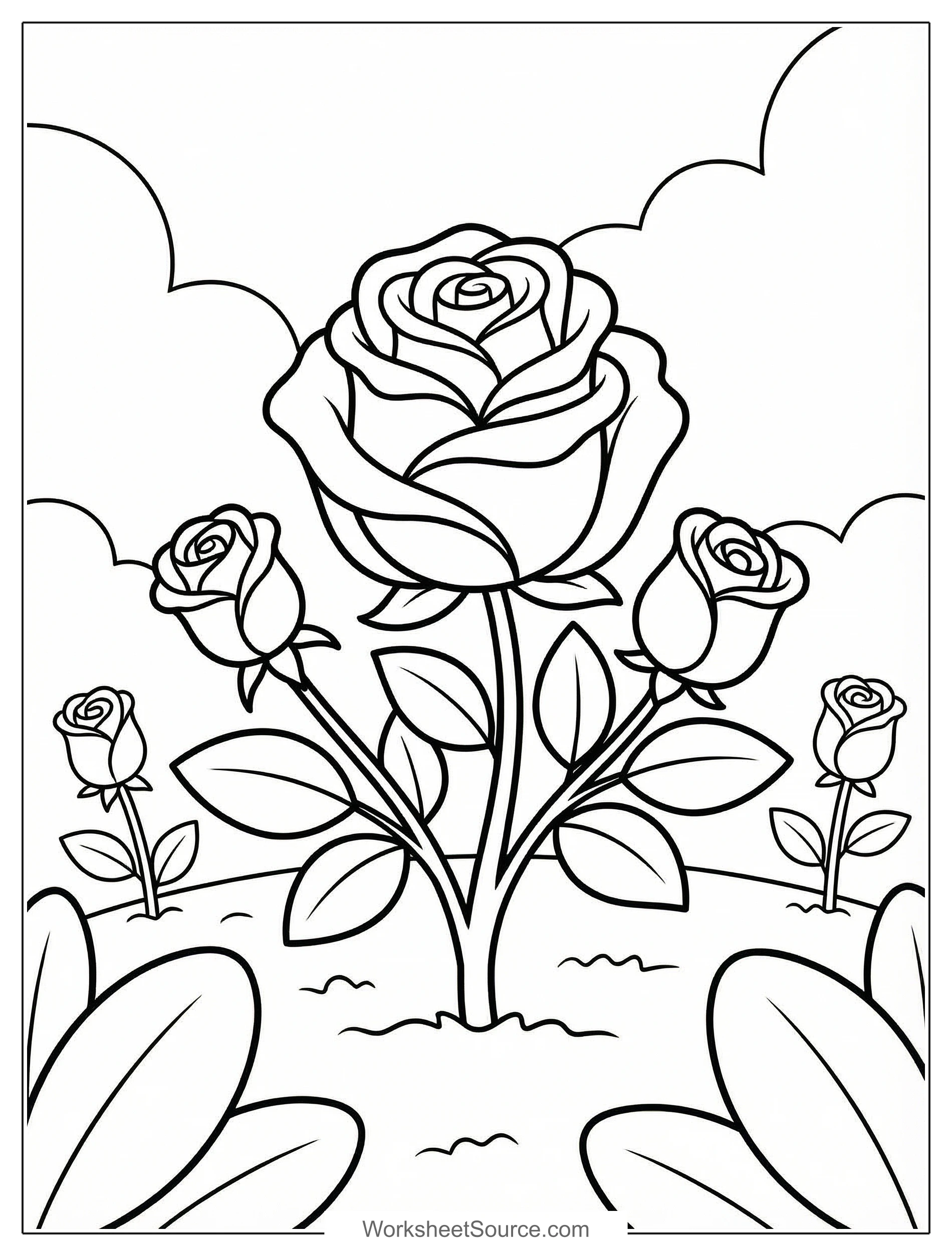 Download this free printable Rose Garden coloring page for kids. Great for classroom activities, home learning, and creative fun.