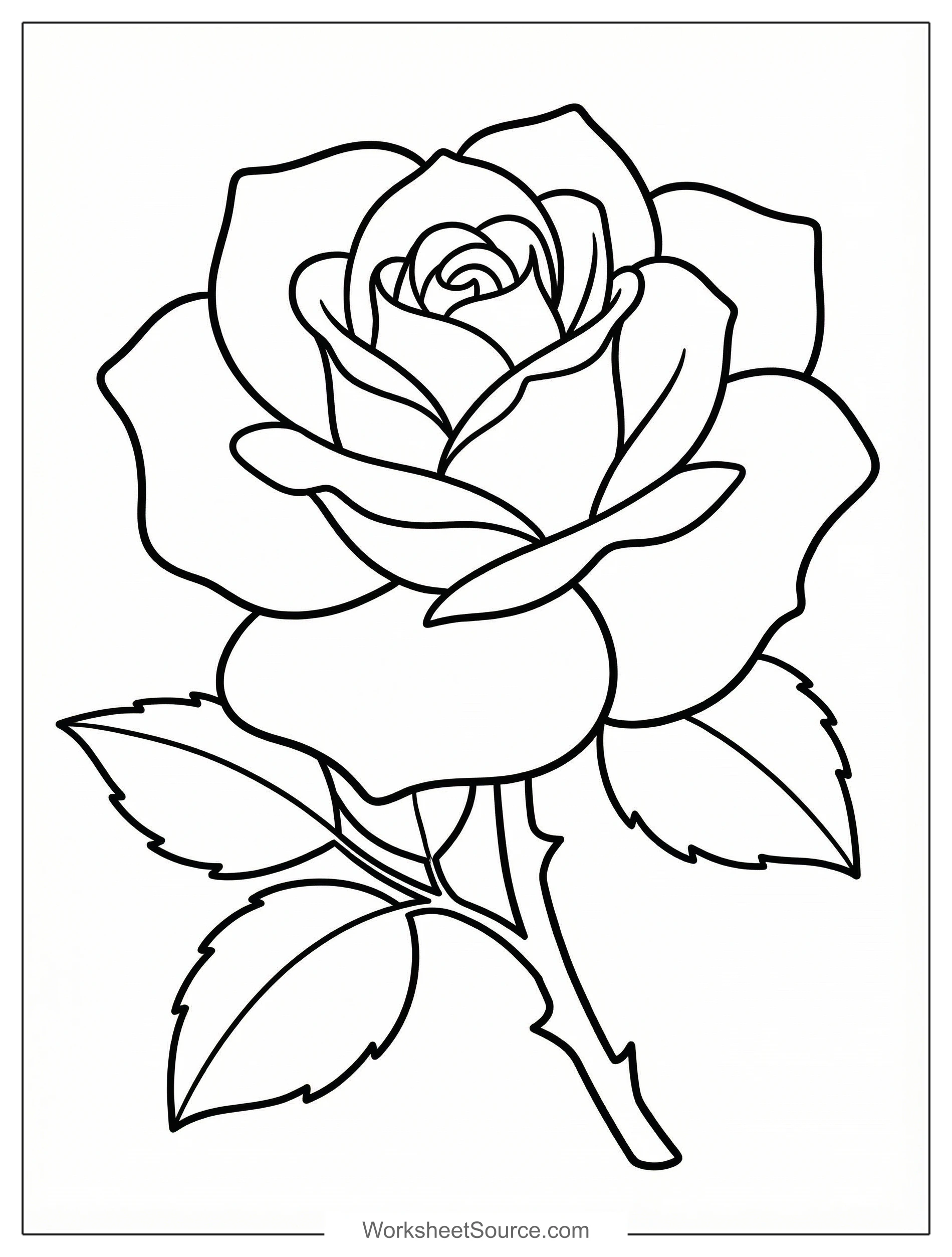 Roses have a long history, and they make a lovely subject for coloring because the petals curl and overlap in interesting ways. Start by looking closely at the lines on the page, imagine how light would hit the petals, and choose two or three colors to blend for a realistic effect. In the classroom, try a coloring center where students compare different rose varieties and then display their pages on a bulletin board titled Rose Garden. At home, this printable is perfect for a rainy afternoon, a calm creative session, or a family art challenge where everyone picks a different color scheme. For a creative extension, ask children to write a short poem about their rose or press a real petal next to their drawing for texture. Teachers can turn this into a lesson about plant parts by labeling petals, stem, and leaves after coloring. This activity is relaxing, sparks conversation about nature, and encourages observation and imaginative color choices.