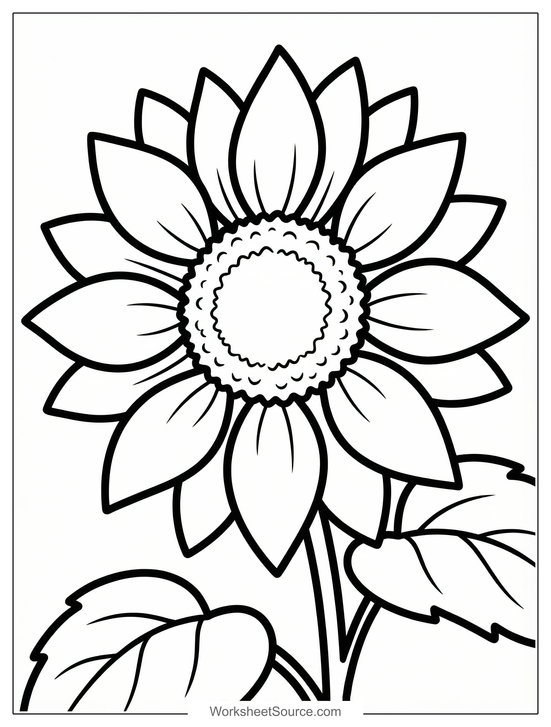 Download this free printable Sunflower Close Up coloring page for kids. Great for classroom activities, home learning, and creative fun.
