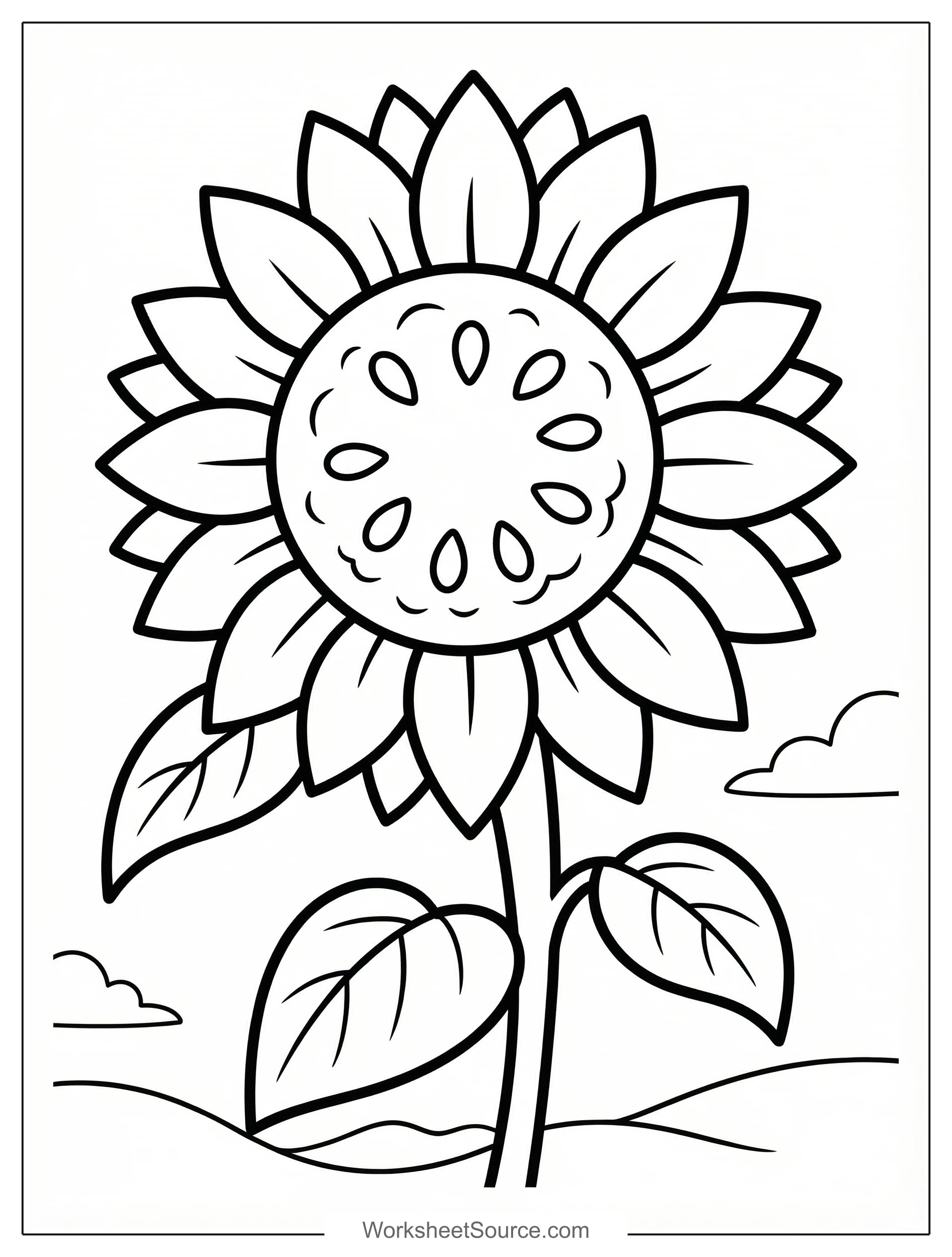 Download this free printable Sunflower With Seeds coloring page for kids. Great for classroom activities, home learning, and creative fun.
