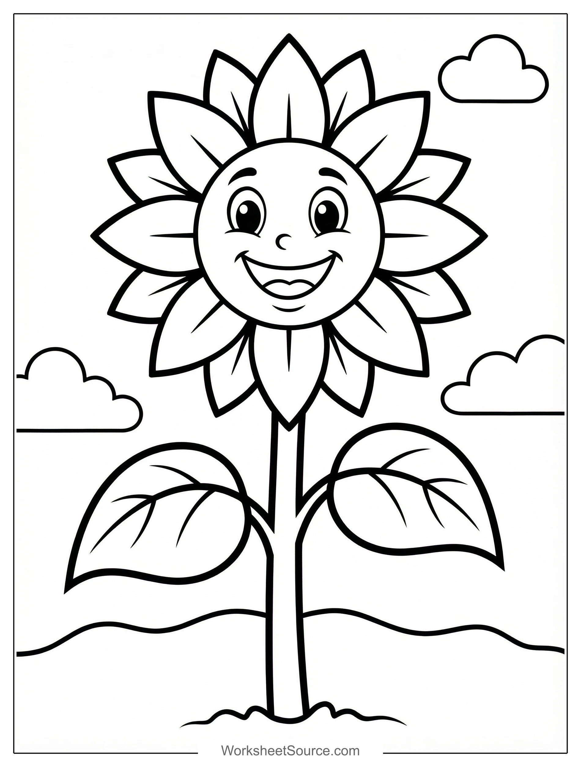 Download this free printable Tall Sunflower coloring page for kids. Great for classroom activities, home learning, and creative fun.