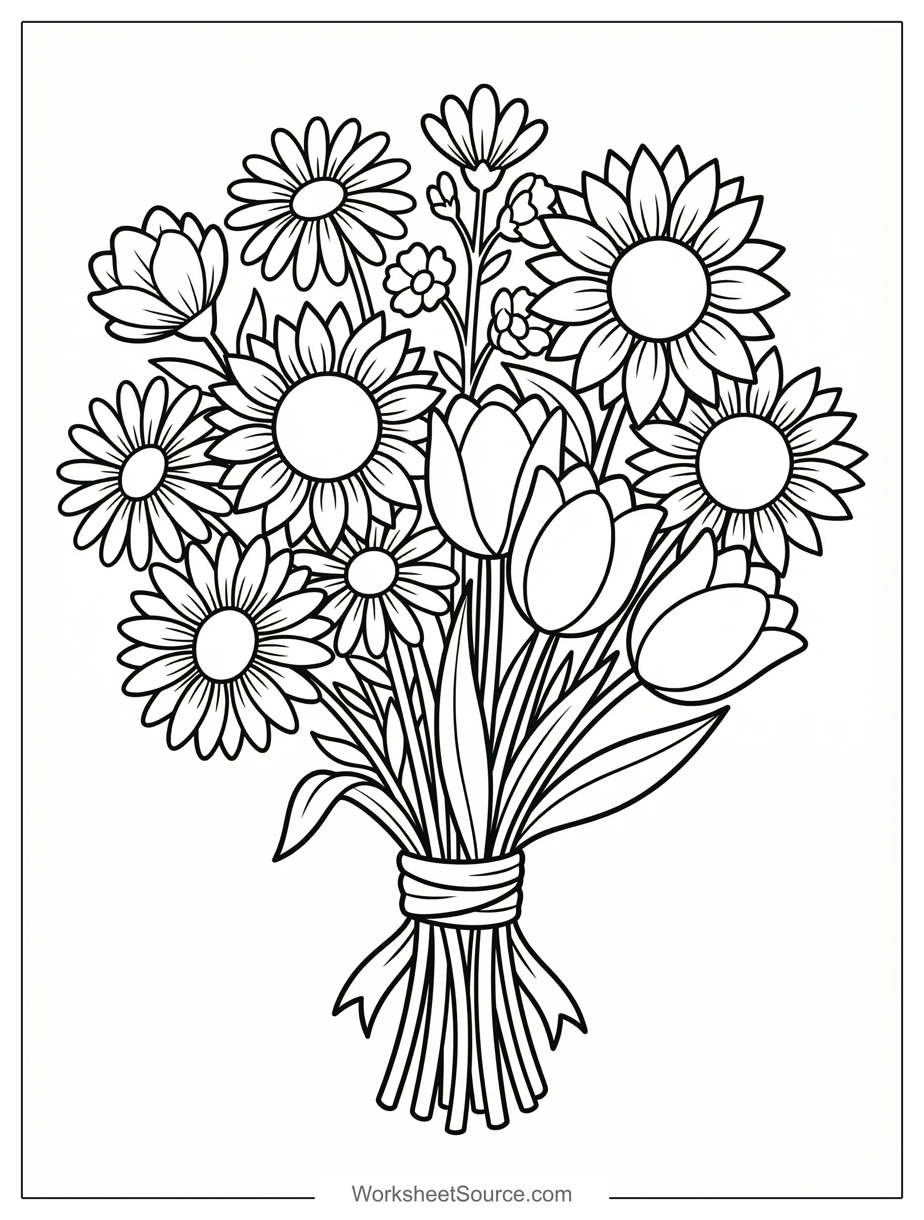Download this free printable Wildflower Bouquet coloring page for kids. It's great for classroom activities, home learning, and creative fun.