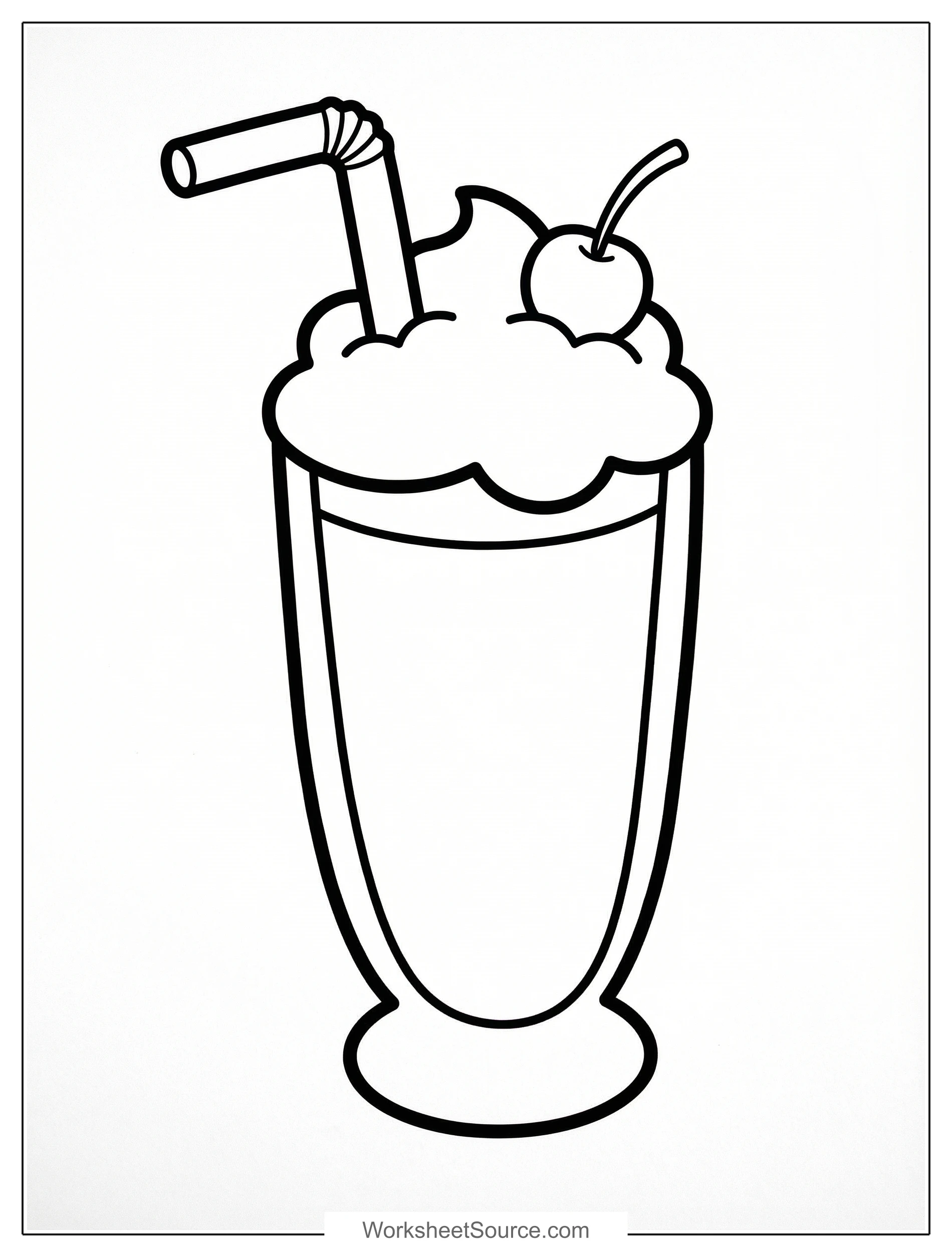 Download and print this free Milkshake With Straw and Cherry coloring page. Perfect for kids, teachers, and parents. High-quality printable coloring sheet.