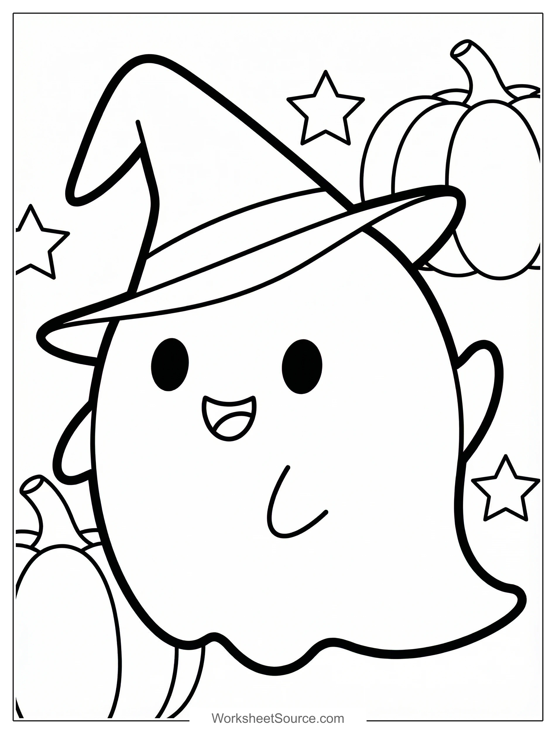 Download this free printable Ghost With Hat coloring page for kids. Great for classroom activities, home learning, and creative fun.