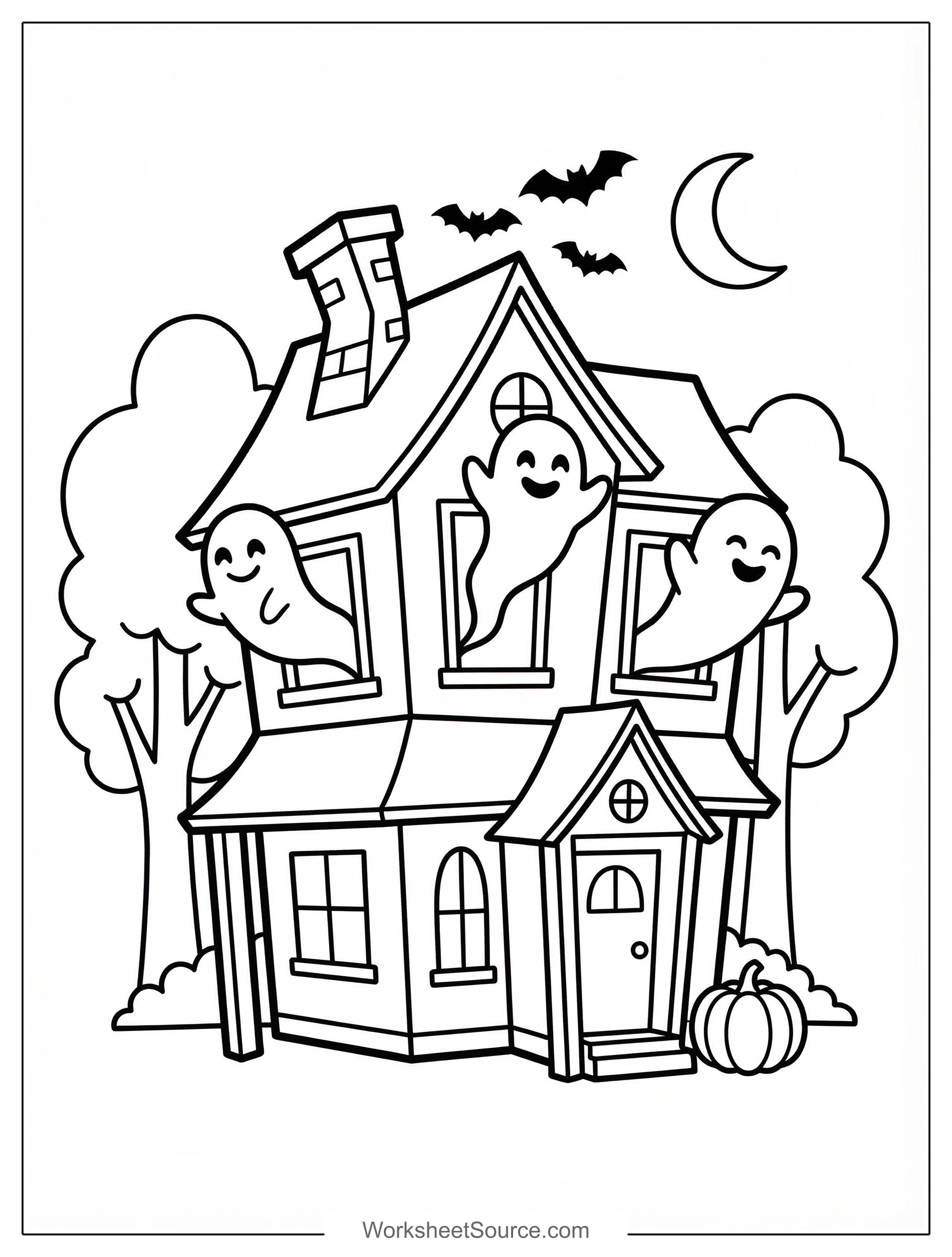 Download this free printable House With Ghosts coloring page for kids. It is great for classroom activities, home learning, and creative fun.